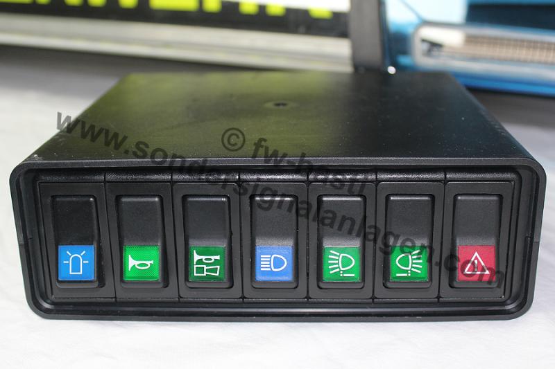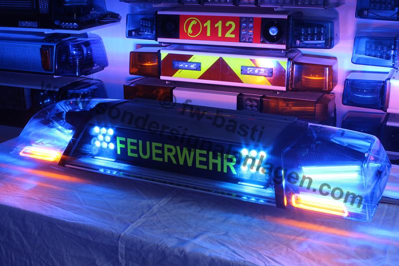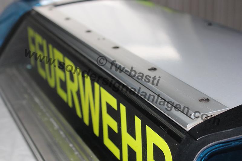 Typ: RTK 7 Leuchtmittel: LED Leuchtfarbe: LED Blau / Hauben Blau Balkenbreite: 1.100mm Baujahr: div. Anhang 28098 Anhang 28099 Hintergründe zum Balken: Meine 2. Blaue RTK7 entstand komplett aus Einzelteilen und ist nach meinen Wünschen zusammengestellt. Es handelt sich um eine Feuerwehr PKW-Anlage, welche eine Besonderheit in Form von 2 Powerblitzen besitzt. Ursprünglich hatte ich einen ASW verbaut, diesen habe ich jedoch vor kurzem gegen den 2. PB ausgetauscht. Ebenfalls eine kleine Besonderheit ist der Deckel, welcher Halter für ein Stauschild besitzt. Letzteres ist noch nicht vorhanden, steht aber auf der Wunschliste für die kommende Zeit. Da die RTK 7 mittlerweile ja hinlänglich bekannt ist und schon des Öfteren vorgestellt wurde, verzichte ich hier auf genauere Detailfotos der verbauten Module. Verbaute Komponenten:
