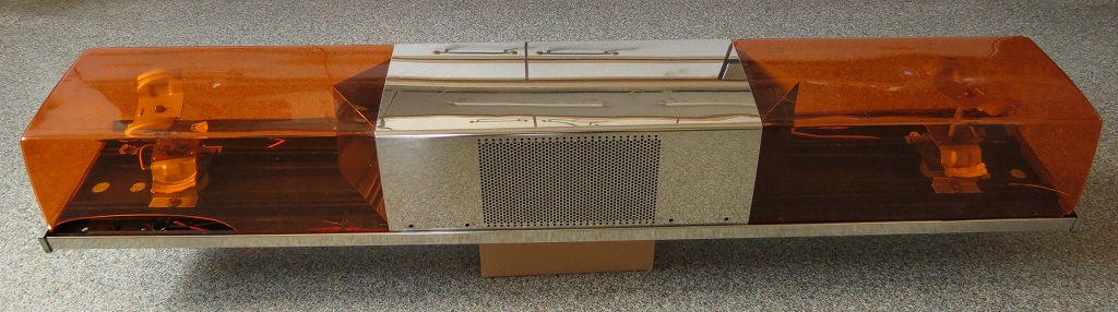 Anhang 28489 Anhang 28488 Zustand bei Erhalt: Der Balken ist soweit komplett aber die Hauben haben den Versand nicht schadlos überstanden. Beim Transport haben sich die Leuchtmittel aus den Haltern gelöst und haben die Hauben von innen heraus „geknackt“. Auch die Spiegel haben ein paar Macken abbekommen. Innen sieht er auf den ersten Blick zwar recht gut aus, aber augenscheinlich wurde er schonmal „restauriert“. Dabei wurde der Rahmen nur neu Schwarz geduscht (samt Dreck usw.) sowie die Lampenhalter und die Motor-/Getriebeeinheit wurden Silber übergesprüht. Einziger Vorteil dieser "Restaurierung" ich brauch mir erstmal keine Gedanken zu den Antriebriemen machen. Anhang 28490 Was bisher geschah: Zunächst habe ich mir mal 2 neue rote Hauben gegönnt. Hätte den Balken zwar gerne rot/blau aber manchmal muß man einfach nehmen was man kriegen kann! :) Anhang 28486 Er funktioniert - braucht aber mal einen kleinen Service und bekommt (wahrscheinlich damit einhergehend) eine ordentliche Aufbereitung und in dem Zuge dann auch die neuen Hauben. Fortsetzung folgt ... Aufbau/Technik: Die Basis bildet ein stranggepresstes, eloxiertes Alu-Profil (Frame), auf dem die weiteren Komponenten montiert werden. Die beiden Lampenhalter, die Spiegel, die Endkappenhalter sowie die LSP-Montageplatte sind direkt montiert. Die Motor-/Getriebeeinheit wird auf einer LSP-Montageplatte montiert. Die Hauben werden außen von den (mit den Typenschildern versehenen) Endkappen und innen von der LSP-Abdeckung gehalten. Die beiden Lampenhalter werden über Gummiriemen von einem gemeinsamen Motor angetrieben und sind somit miteinander synchronisiert. Die Riemen werden über ein Schneckengetriebe angetrieben. Die Spannungsversorgung der sich mitdrehenden Leuchtmittel erfolgt (pro Lampenhalter) über einen Schleifring und samt Kohlbürste. |