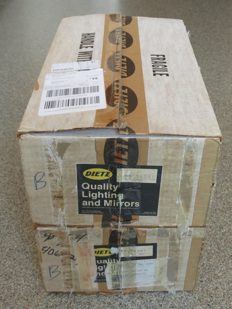 Anhang 30439 Inhalt: jeweils eine blaue NOS Haube Anhang 30440 Sind laut Aufdruck vom 3. Februar 1984 und der eine Karton war (bis Heute ;)) sogar noch original zu. Die andere hat auf der Oberseite, trotz originalem Karton, vom langen Lagern ein paar Kratzer abbekommen (ist wohl mal etwas Sand/Dreck in den Karton gelangt). Somit bin ich nun Hauben-technisch erstmal gut versorgt! |