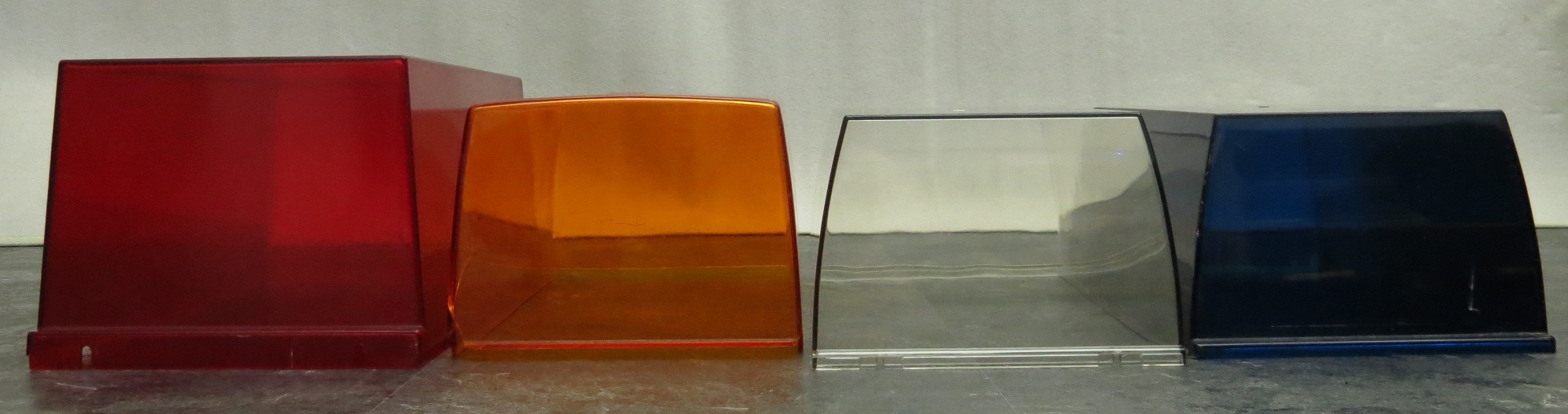Hier das Resultat: Anhang 28497Anhang 28498 Die linke Seite ist außen, die rechte Seite ist innen (Hauben liegen bündig) ... Anhang 28499 ... und einmal die Stirnseite. Die Hauben sind wie folgt zuzuordnen: Federal Signal TwinSonic Code3 SD Bar Dietz - Omni-Chief Sireno - Condor Ich hoffe man kann es einigermaßen erkennen. |