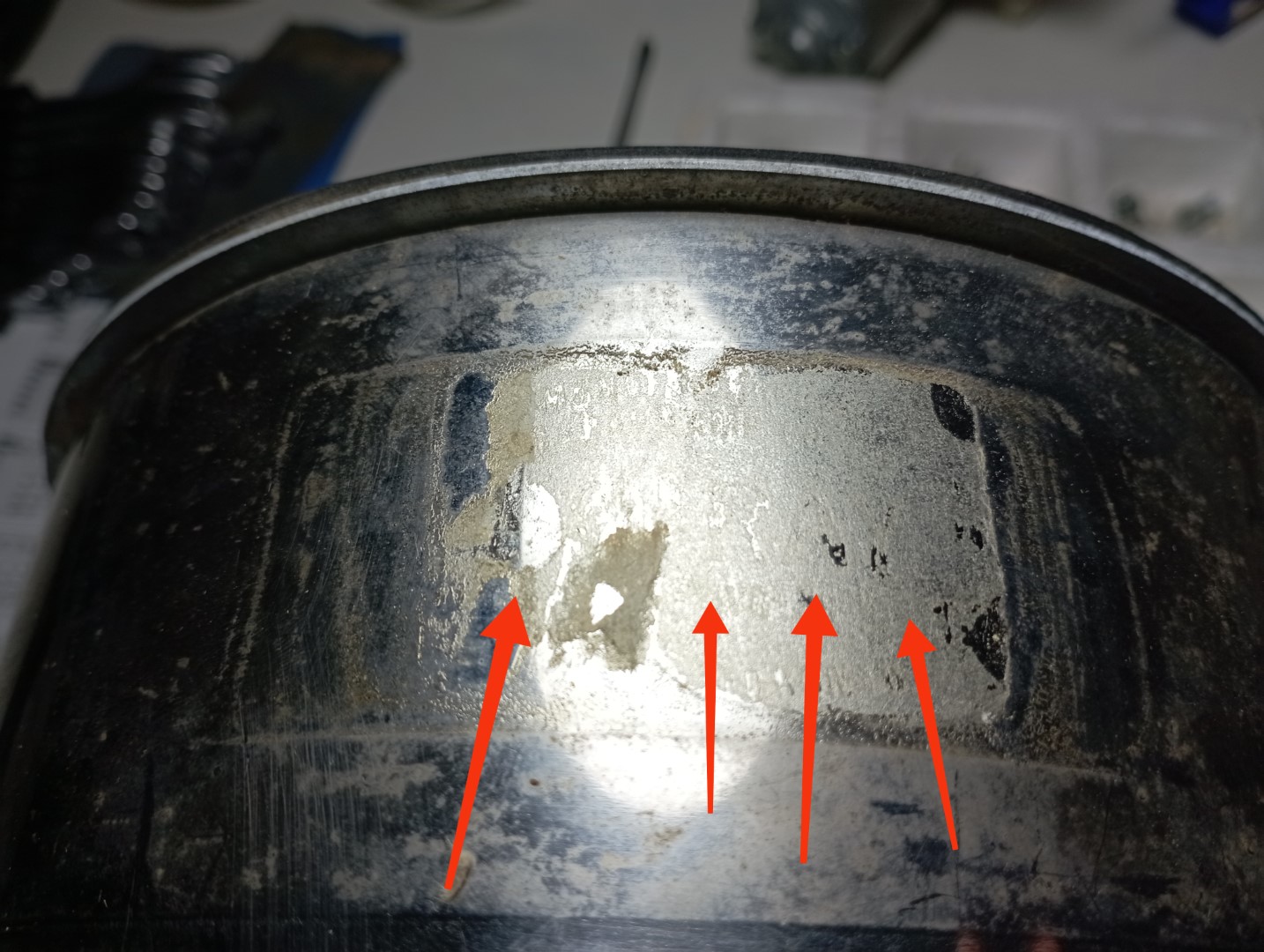 Über den Standardmotor von Bosch wird der sealed beam Holder angetrieben. Das Plus kommt innen durch die Antriebswelle und wird bis nach oben zu den sealed beams durch die hohle Konstruktion geführt. Sieht man hier sehr gut: Anhang 29075 Die entgültige Bestätigung für das Modell 4002 von DO-RAY erhielt ich bei der Identifikation der Überreste des Typenschildes. Anhang 29076 Anhang 29077 Viel sehen kann man nichts, aber wenn man das im richtigen Lichtwinkel betrachtet, dann sieht man die Buchstaben "D" + "R" + "A" und "Y". Anhang 29078 Auch kann man das Wort "Toronto" erahnen. Das hilft aber nicht weiter, da beide Versionen dies enthalten. Also entweder "Colo. City, CO - Toronto" oder "Chicago - Toronto" |