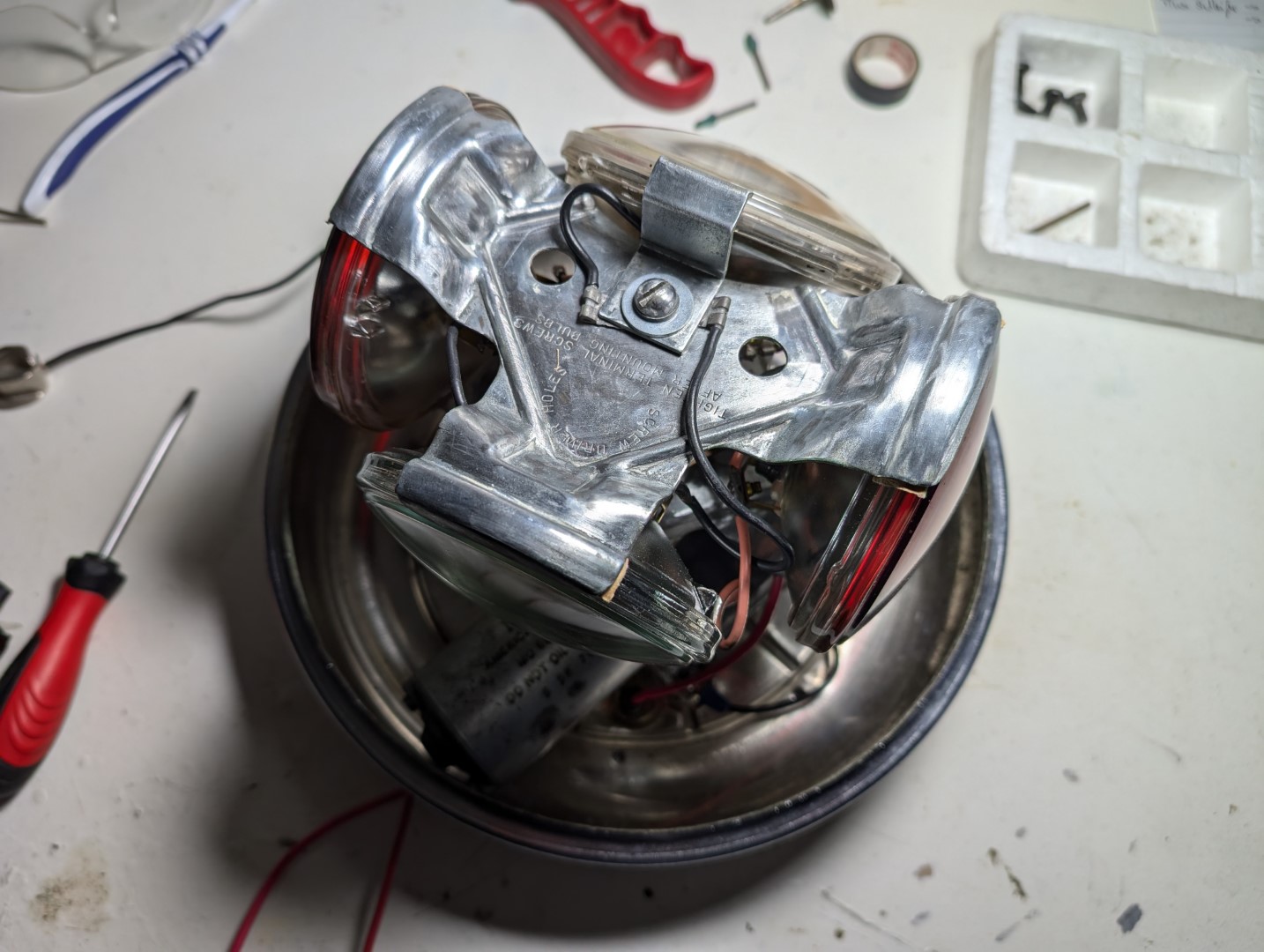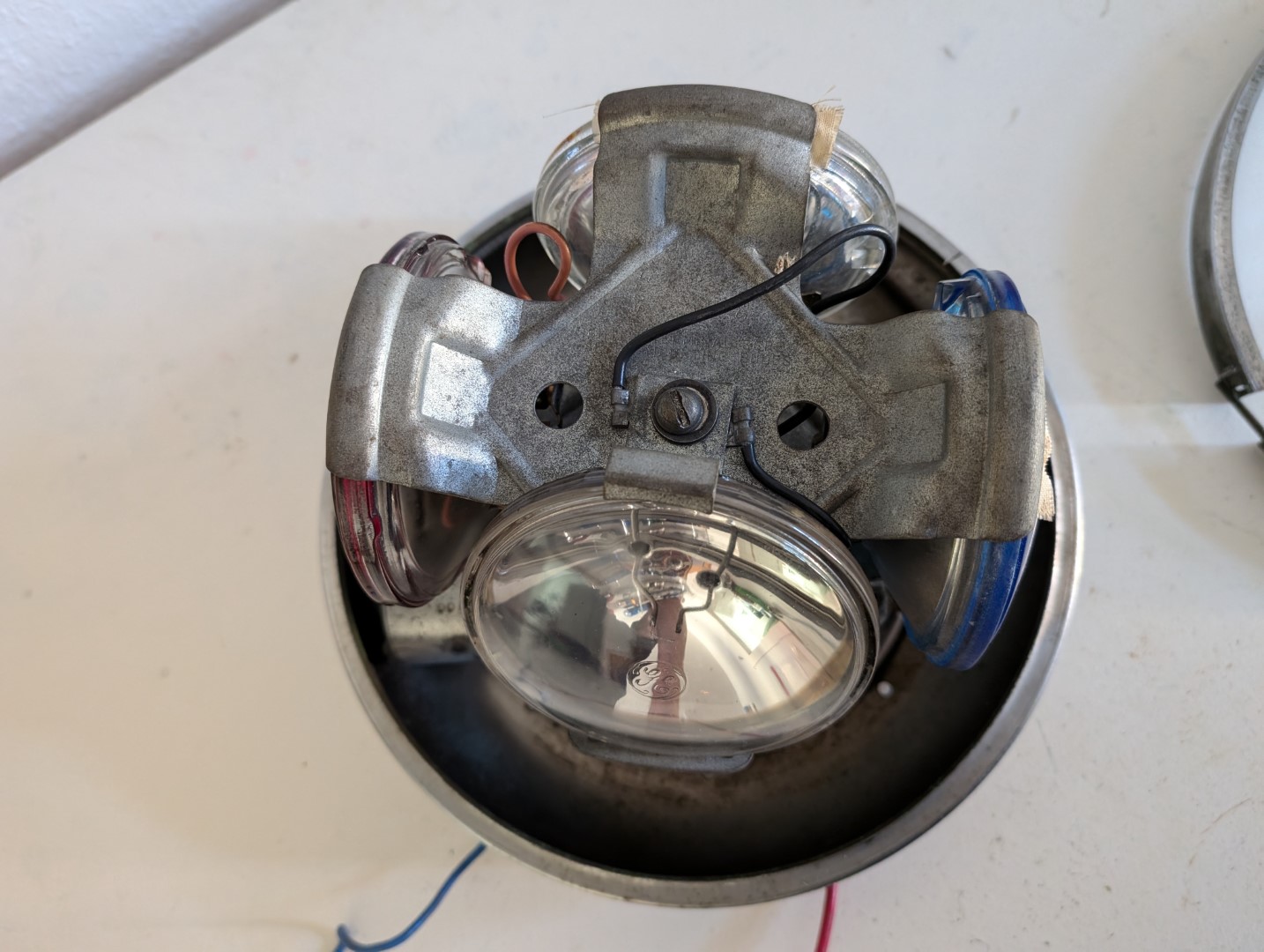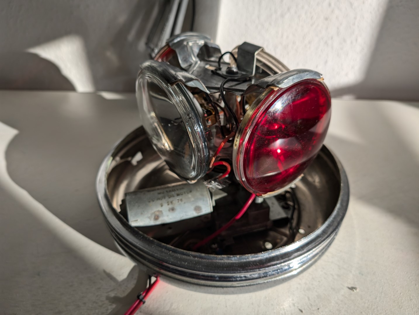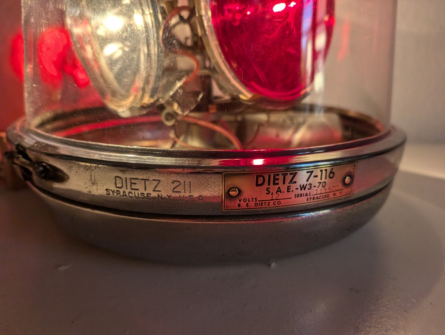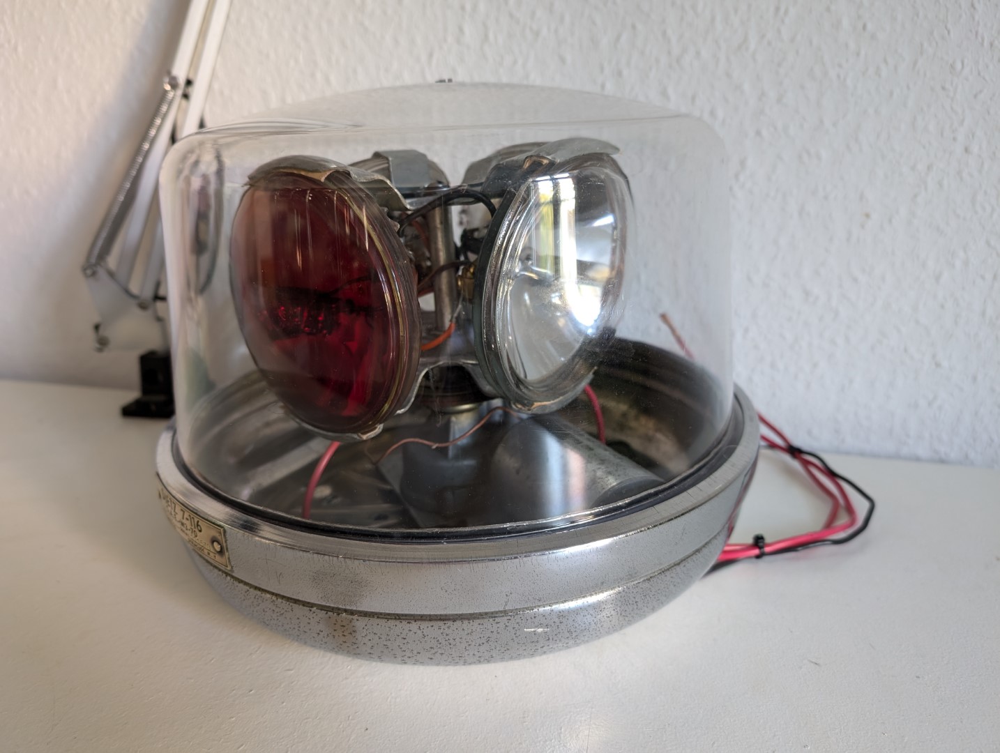 Irgendwann wird dann die richtige Haube und Unterteil vorbeifliegen. Anhang 29741 Anhang 29742 Alle Metallteile gesäubert, geschliffen und poliert. Die Pappschildchen als Schutz der sealed beams sind meist weg oder vergammelt, daher auch diese erneuert. Die Verkabelung ist auf zwei Stromkreise ausgelegt, d.h. ich kann rot und klar jeweils separat leuchten lassen. Anhang 29743 Endmontage nachdem ich alle notwendigen Kabel untergebracht habe. Anhang 29744 Anhang 29745 Mit Sonnenlicht noch immer eine schöne Erscheinung. Anhang 29746 Anhang 29747 Haube ist NOS, wenn auch nur eine Stratolite 80. Anhang 29748 Anhang 29749 Anhang 29750 Anhang 29751 Und in Aktion. Anhang 29752 Da die Version 211 der Dietz Leuchte noch aus verchromten Stahlblech bestand, kann man den angegangenen Chrom natürlich nicht mehr so einfach beheben, wie bei der späteren polierten Stahlblech Version der 7-11. Mein Exemplar stammt aus der Übergangszeit zwischen 211 und 7-11. |