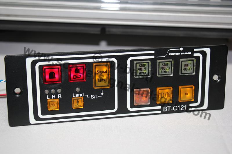 Anhang 30092 Typenschild- und TST-Datei Aufkleber. Besonderheit bei digitalen Anlagen von Pintsch Bamag ist, dass die TST-Dateien von Bedieneinheit und Balken identisch sein müssen, da sonst keine Kommunikation möglich ist. Anhang 30093 Gesteuert wird der Balken über ein BT-C-121 TH 2014. Es ist die digitale Weiterentwicklung des allseits bekannten BT 121. Neu ist die super schlanke Bauweise und die sehr einfache Verkabelung: Es werden nur +, -, CAN High und CAN Low benötigt. Dies erleichtert einen Einbau in der Mittelkonsole sehr, da kein dicker Kabelstrang mehr zum Bedienteil geführt werden muss. Die Programmierung bringt einige kleine Besonderheiten mit sich. Neben den bekannten Funktionen Blaulicht/Hupenbereitschaft/Horn und S/L lassen sich mit den kleinen gelben Tasten darunter Frontblitzer sowie der Powerblitz aktivieren. Die Frontblitzer und die IR-Kennleuchte schalten sich automatisch bei aktiviertem Blaulicht zu, der Powerblitz muss immer separat aktiviert werden. Durch langes Drücken der Blaulichttaste kann in den Nachtmodus in Form einer Drehspiegelsimulation gewechselt werden. Die 3 ASG-Tasten sind gegeneinander verriegelt und geben ein akustisches Signal. Über die Taste "Flasher/Yelp" kann der rote Anhalteblitz eingeschalten werden. Ist dieser aktiv, kann über die Signaltaste das Yelp-Signal abgegeben werden. Kurioserweise schalten sich die Hauptkennleuchten bei aktiviertem ASG Vorne aus, sobald man auf die Flasher Taste drückt - der Anhalteblitz bekommt vorrang. Rechts unten in der Mitte können beide Alley-Lights akiviert werden, bei aktiven Alleys gibt die BE ebenfalls ein akustisches Signal von sich. Ganz rechts kann die IR-Kennleuchte aktiviert werden, dies ist unabhängig von der Hauptkennleuchte möglich. Bei aktivierter HKL ist die IR-Leuchte automatisch mit akiv, kann aber abgeschalten werden. Anhang 30094 Der Powerblitz und der Anhalteblitz sind auf einem Blech kombiniert montiert. Es handelt sich um die bekannten Platinen der Topas-Reihe, nur die Linsen sind aufgrund der schrägen Montage passend ausgerichtet Anhang 30095 Der Anhalteblitz besitzt 2 LEDs in Rot, welche eine gebündelte Linse besitzen. Beim Powerblitz sind je 3 LEDs mit Streulinse und 3 mit einer gebündelten für eine weitere Reichweite vorhanden. Anhang 30096 Seitliche Ansicht der Hauptmodule, diese bestehen aus 4 Platinen mit je 4 LEDs und sollten soweit ja bekannt sein. Die Alley Lights besitzen je 6 LED, wovon 2 über eine sehr große Streulinse verfügen - alles in allem ergeben diese ein stimmiges und kräftiges Lichtbild. Anhang 30097 Fokus auf das IR-Modul - Das IR-Modul besitzt eine kleine Platine, welche aus dem Balken nur Spannungsversorgung erhält. An der Platine sind ein kleiner Motor und eine IR-LED angeschlossen, der Motor treibt die über der LED sitzende Einheit mit Spiegel an, sodass das Licht dann klassisch wie beim Drehspiegelmodul rundum abgegeben wird. Anhang 30100 Die Verbindung zwischen Balken und Fahrzeug erfolgt wie bekannt mit mehreren Molex-Steckern, die externen Lautsprecher werden am schwarzen AMP-Stecker angeschlossen. Den Kabelbaum konnte ich dieses mal selbst fertigen, da dieser relativ klein gehalten werden konnte. An dieser Stelle nochmals vielen Dank an die Firma Standby, die mir die komplette technische Dokumentation des Balkens zu Verfügung gestellt hat! Anhang 30098 Rein Blau macht der Balken auf jeden Fall mächtig Licht, gerade in Verbindung mit Front- und Powerblitz. Anhang 30099 Zum krönenden Abschluss, wie immer noch eine Langzeitbelichtung mit aktiviertem Blaulicht, Powerblitz, Matrix und Alley-Lights. Mein Fazit zur Anlage: Da ich eigentlich kein großer Pintsch Bamag-Fan bin, da es doch des öfteren Probleme mit den Balken bei mir gibt (.... Niklas ist da bestens informiert.. :D ), hatte ich eigentlich nicht vor, einen weiteren Zirkon in meine Sammlung aufzunehmen. Die Chance jetzt und der wirklich gute Preis haben mich dann jedoch umgestimmt. Gerade das Bedienteil, welches trotz der "kleinen" Konfiguration viele Gimmicks mit sich bringt, gefällt mir sehr. Auch die Gesamtkombination mit den Hänsch Sputnik Nano und die Optik des kompletten Fahrzeuges gefallen mir wirklich gut. Die nur 3 ausgebbaren Texte sind in meinen Augen ein kleiner Wermutstropfen, die jedoch durch die anderen Möglichkeiten des Bedienteils wieder gut gemacht werden. Man darf nicht vergessen, dass es sich hier um einen knapp über 10 Jahre alten Balken handelt. Neben dem Zirkon befindet sich noch ein weiterer Balken der Polizei Thüringen in meiner Sammlung. |