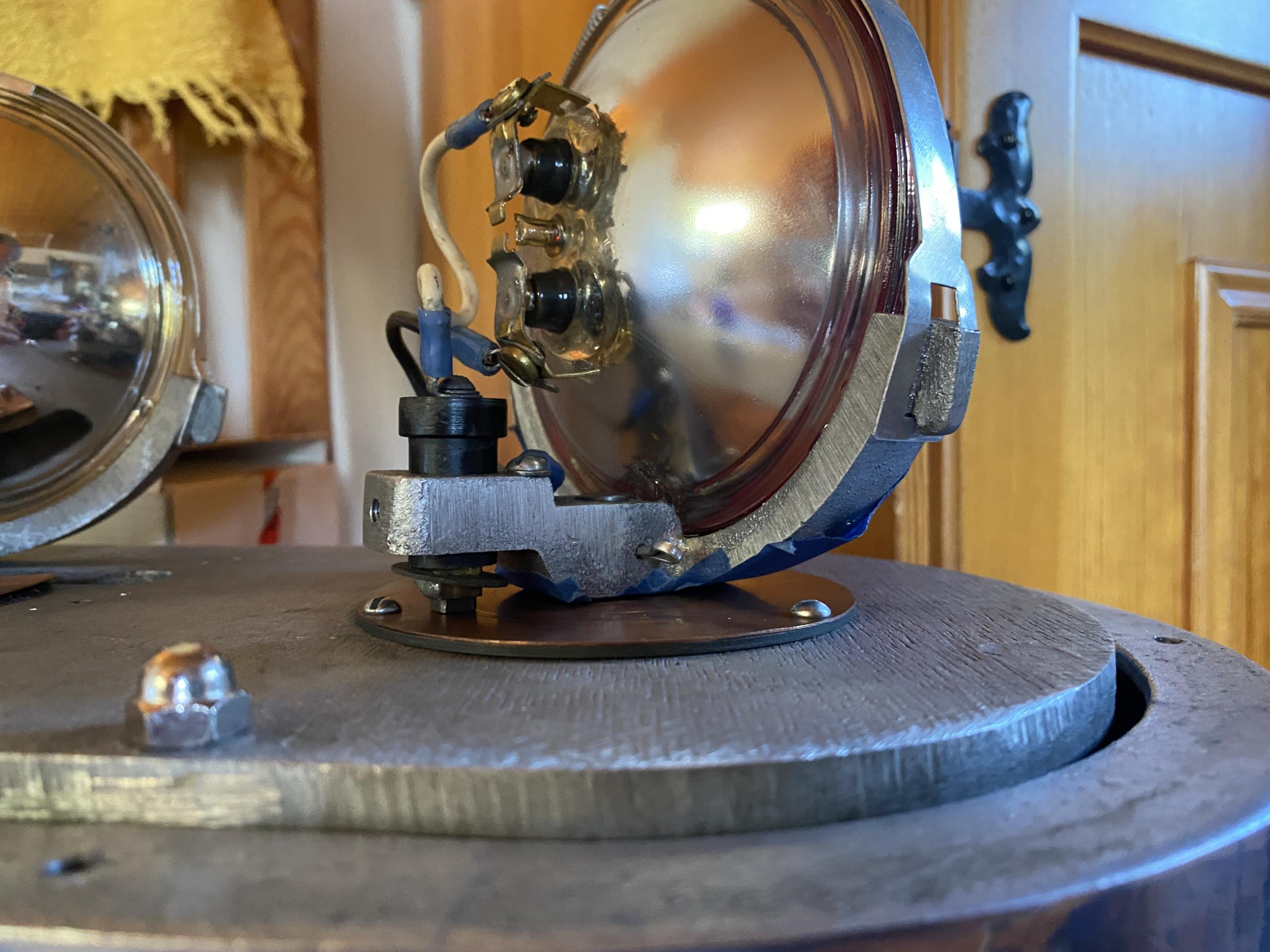 Glückwunsch zu dem Fang!! Dachte schon die wären ausgestorben. Du hast es schon richtig angeschlossen. An Deiner Stelle würde ich an den Sammelpunkten alle + Kabel lösen. Dann Masse aufs Gehäuse und mit dem + Anschluss alle + Anschlüsse mal durchprobieren. Dann sollte eine Sealed Beam nach der anderen Leuchten. Da wo es funkt liegt dann der Fehler und Du kannst den beheben. Wird bestimmt nur ne defekte Isolierung oder eine defekte Sealed Beam sein. ---------- Der Anschluss zwischen Motor und roter Klemme ( das weiße Kabel rechts ) sieht an der Quetschverbindung so aus als ob da blankes Kabel auf dem Gehäuse liegt. Kann das aber nur schlecht auf dem Bild erkennen. |