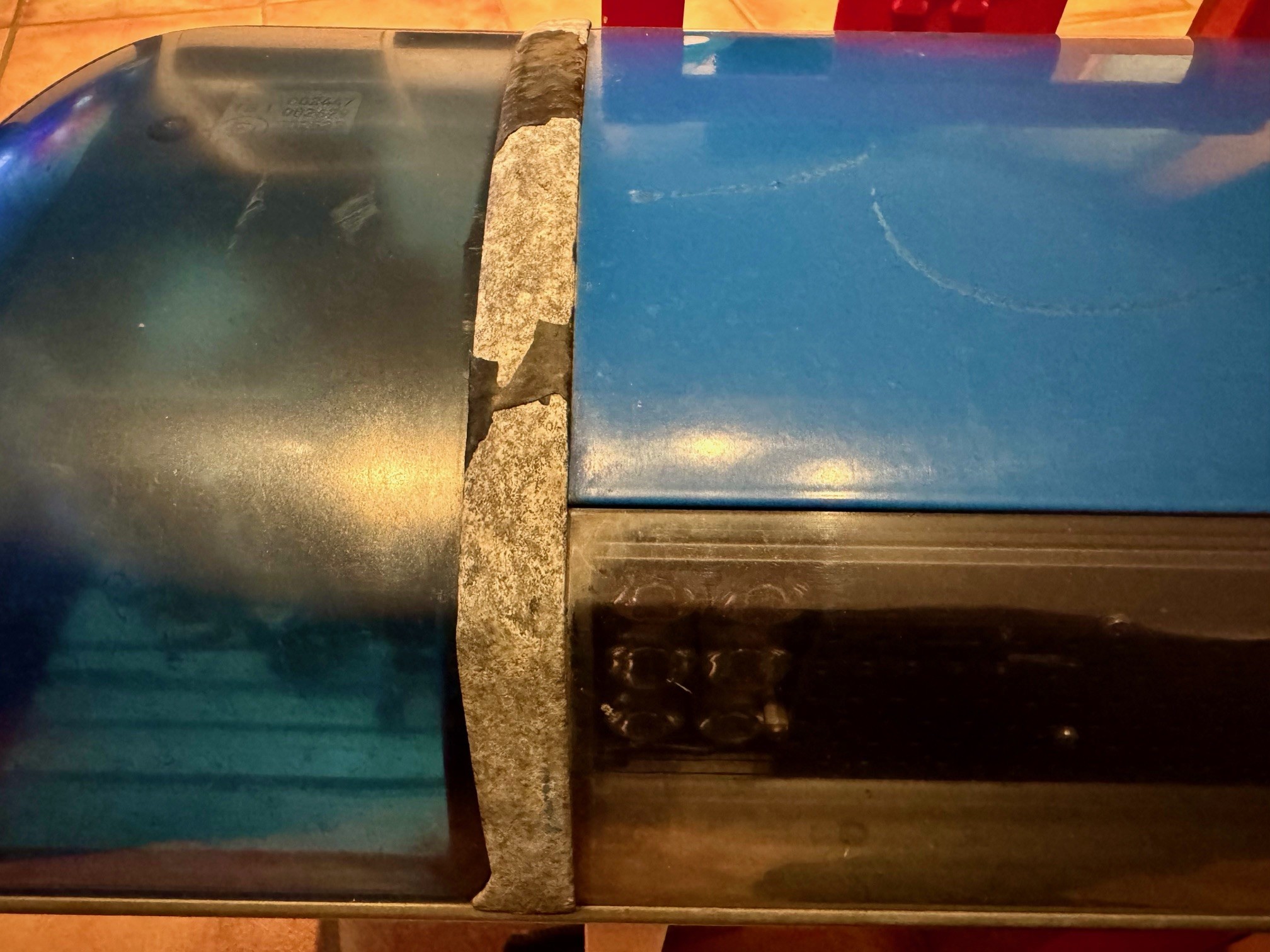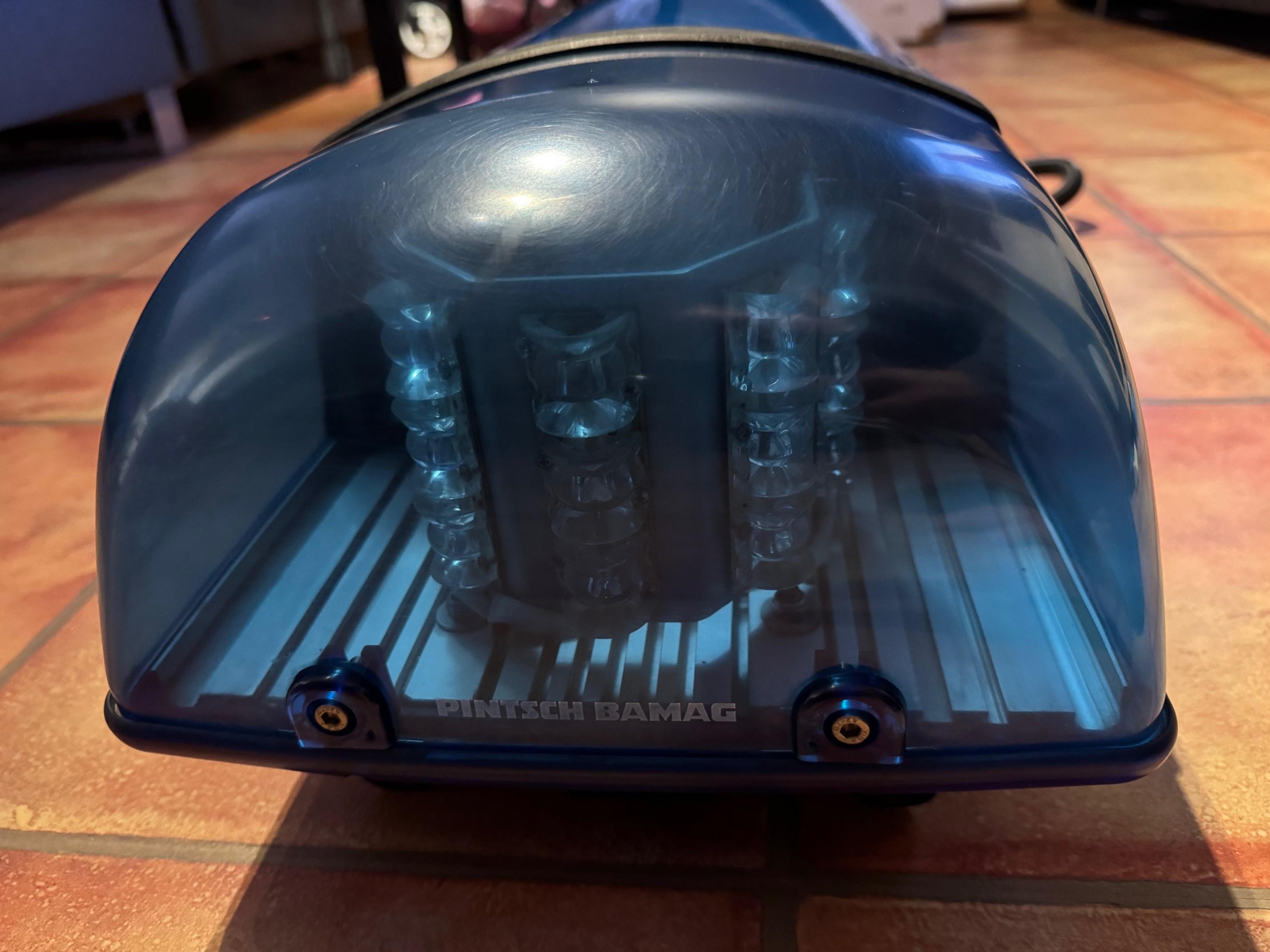 Der Balken ist ausgerüstet mit 2 HKL (5x3 LED), 2 Matrizen, ASW vorn, Anhalteblitz rot und einem RWS. Es sind zwei Lichtsteuergeräte V2 sowie ein Steuergerät Typ MS-300 verbaut. Anhang 30625 Leider waren die beiden Seitenteile durch die Witterungseinflüsse schon auf den ersten Blick kaum noch zu gebrauchen. Naja, kann man ja ggf. lackieren. Anhang 30626 Erstmal den Deckel ab und schauen, was da so verbaut ist Anhang 30627 Ein Blick auf die Seitenteile nach dem zerlegen war dann relativ ernüchternd, da war nix mehr zu holen, diese waren durch die Witterungseinflüsse ziemlich Korrodiert. Anhang 30628 Anhang 30629 Glücklicherweise hatte mit vor nicht allzu langer Zeit ein Paket von Basti erreicht, in dem eine zerlegte TOPas schlummerte, die ich mir zusammenbauen wollte. Da habe ich mir kurzerhand die Kunststoff Seitenteile geschnappt und ausgetauscht. Noch das Typenschild sauber ablösen und schon war die Baustelle erledigt. Anhang 30630 Nach der Reinigung wieder alles zusammensetzten und (fast) wie neu. Naja, die Hauben bekommen später noch eine Politur, und dann! Anhang 30631 Anhang 30632 Anhang 30633 Anhang 30634 |
