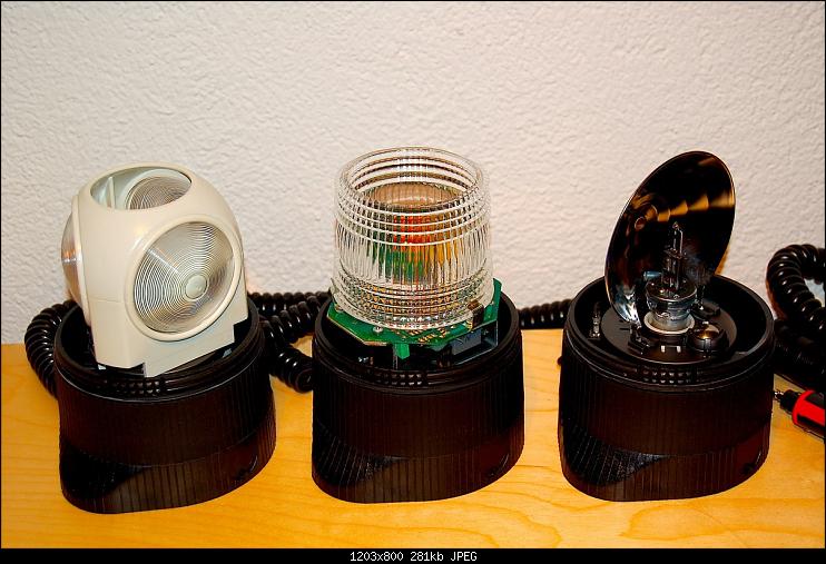 Rundumleuchte Fresnel A blau 12V Stativmontage, Lichthaube mit Fresnelloptik, H1 55W, Schneckenantrieb Anhang 22122 Rundumleuchte Microrot gelb 12V 2fache Magnetmontage, H1 55W, Schneckenantrieb ca 150 Umdrehungen/min Anhang 22118 Rundumleuchte Miniagri gelb 12V 2fache Magnetmontage, H1 55W, Schneckenantrieb ca 150 Umdrehungen/min Anhang 22119 Rundumleuchte Miniagri blau 12V 2fache Magnetmontage, H1 55W, Schneckenantrieb ca 150 Umdrehungen/min Anhang 22120 Alle drei Innenleben: DreilinsenOptik, Doppelblitztechnik, Drehspiegelmodul Anhang 22121 Rundumleuchte RTB 5 12V / 24V H1 / 55W 160 Umdrehungen/min Festmontage Sockel aus Gummi Anhang 13338 Rundumleuchte RTB 5 Flash 12V Doppelblitzfolge ca 120 Blitze/min, 3 Fach Magnetmontage, 10J Leistung Anhang 22124 Anhang 22123 GDO Spannung 12V Drehspiegeltechnik, Schneckenantrieb, ca 150 Umdrehungen/min Leuchtmittel H1 55W Magnethaftung bis 250km/h Anschluss über Zigarettenanzünder Stecker mit Kontroll LED Anhang 22125 Die aerodynamische Lichthaube ist mit 4 Imbusschrauben mit dem Sockel der Leuchte verschraubt und da sich im inneren der Kennleuchte auch praktischerweise eine Ersatzglühleuchte befindet, ist im Fuß noch zusätzlich ein Imbusschlüssel verstaut. So kann man auch ohne größere Umstände innerhalb wenigen Minuten ein defektes Leuchtmittel tauschen. GDO Flash 2F Spannung 12V Doppelblitz 120Blitze/min Wendelblitzrtöhre 8Joule Magnethaftung bis 250km/h Anschluss über Zigarettenanzünder Stecker mit Kontroll LED Anhang 22127 Von der Bauform her identisch mit der GDO Halogen, nur in dieser Leuchte sitzt eine Doppelblitzelektronik und die Lichthaube ist entsprechend in einem helleren blau gehalten. Sirena GF 8.8 Flash Spannung 12Volt Leuchtmittel Xenonröhe 10J 120x Blitze/min Magnetsaugfuß Anschluss an Zigarettenanzünder Anhang 22708 Sirena Eurorot Spannung 12/24Volt Leuchtmittel Halogen 21W Treibriemenantrieb ca 150Umdrehungen/min Magnethaftung Anschluss über Zigarettenanzünder Stecker mit Kontroll LED Kompakte Kennleuchte mit 21W Halogenleuchtmittel und ECE Zulassung. Erste Treibriemenleuchte von Sirena mit Dualspannung durch Treibriemenumstellung und Leuchtmittelwechsel. Anhang 22128 |