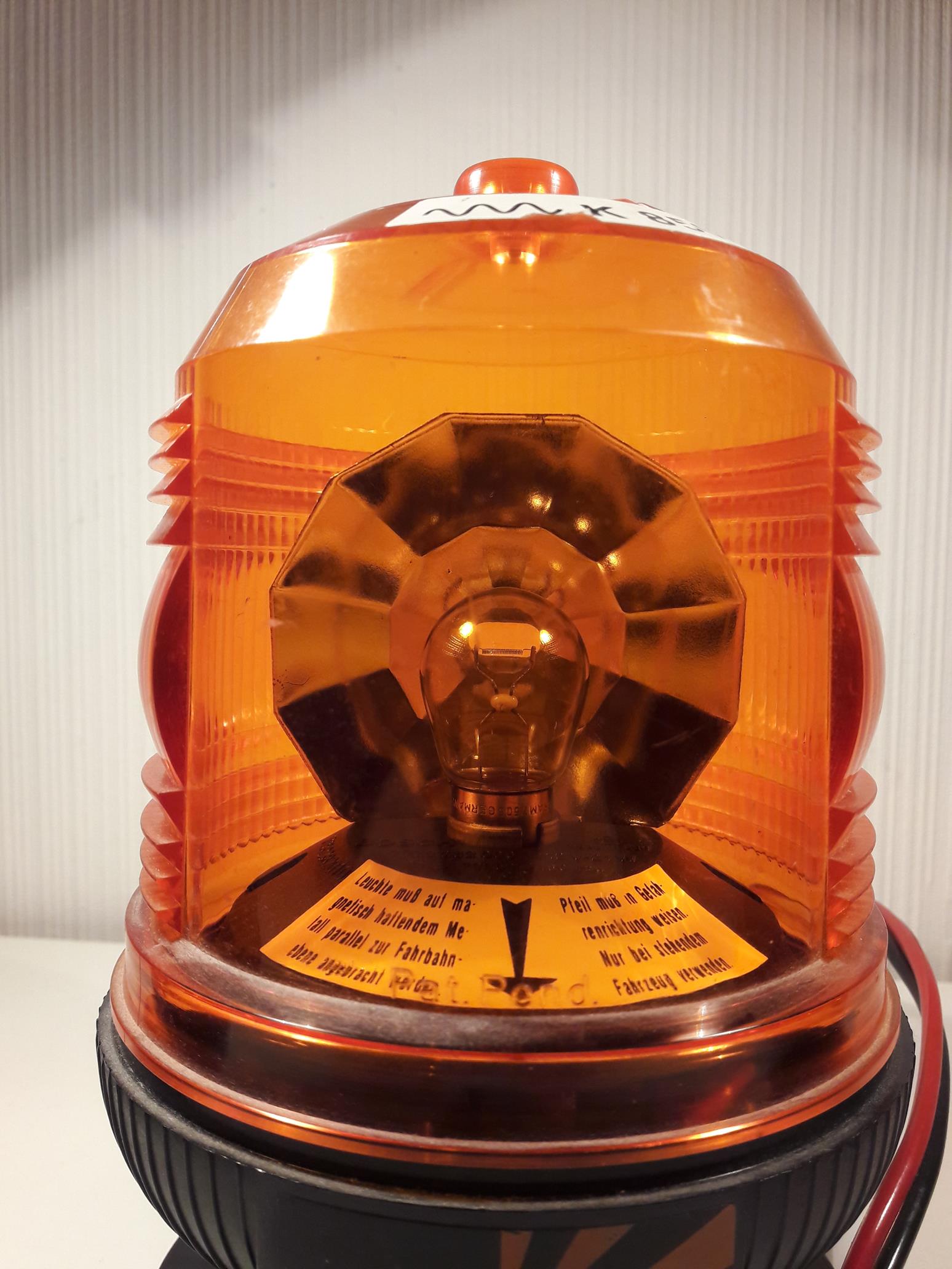 Äußerlich handelt es sich um eine Rundumleuchte mit außenliegendem Ein-/Ausschalter und einem etwa 3 Meter langen Kabel mit Universal-Stecker. Anhang 24928 Der Stecker lässt sich als Zigarettenanzünderstecker oder DIN-/ISO-Stecker verwenden. [Anhang 24934 WBL steht jedoch für Warnblinkleuchte. Der Facettenspiegel ist fest in der Leuchte angebracht. Davor blinkt eine 12 Volt / 21 Watt - Glühlampe. Anhang 24931 Anhang 24933 Die Zulassung der Leuchte lautet ~~~K 8509. Anhang 24929 Die Lichthaube hat eine Fresnel-Form. Ein klares "Fenster" ermöglicht den Blick ins Innere der Leuchte und ist gleichzeitig der Lichtaustritt. Im Leuchteninneren befindet sich ein Aufkleber mit einem Pfeil und dem Text "Leuchte muß auf magnetisch haftendem Metall parallel zur Fahrbahnebene angebracht werden. Pfeil muss in Gefahrenrichtung weisen. Nur bei stehendem Fahrzeug verwenden." Anhang 24930 Die Leuchte hat einen Ringmagnet und steht auf einer runden Metallplatte. Diese kann auf der Hutablage befestigt werden, um die Leuchte sicher darauf abzustellen und die Leuchte in der Heckscheibe bei Bedarf sofort einzuschalten. Hier wird ein Foto der Sirena LAMPCAR verwendet, der Aufbau ist jedoch bei der WBL 1221 gleich. Anhang 24935 Der Schalter an der Gehäuseaußenseite dient als Ein- und Ausschalter der Leuchte. Anhang 24932 Die Schwester der WBL 1221 ist die Sirena LAMPCAR. Kurzes Video: <iframe width="560" height="315" src="https://www.youtube.com/embed/xCsv8QGnrRM" frameborder="0" allow="autoplay; encrypted-media" allowfullscreen></iframe> |