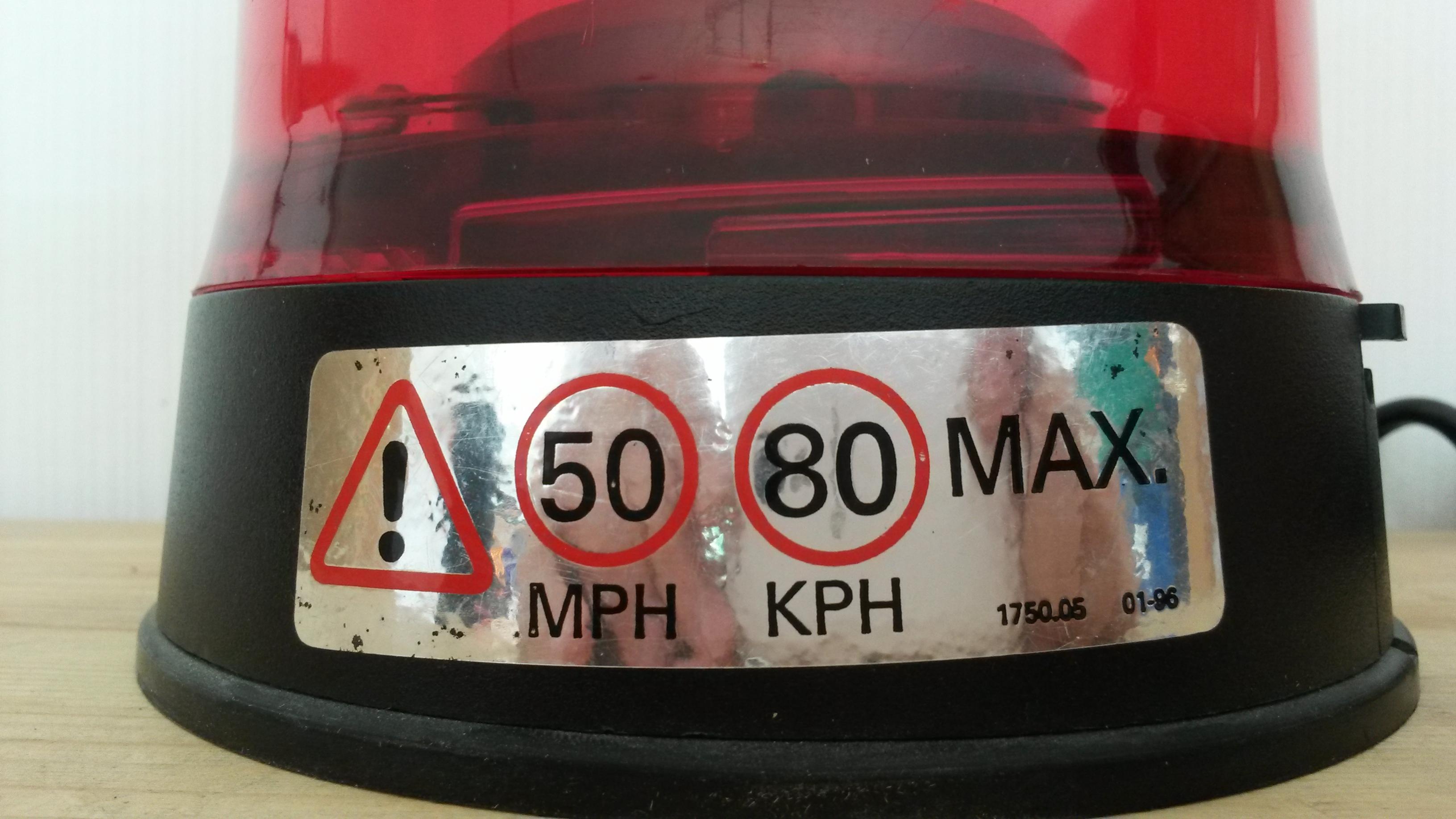 Es handelt sich um eine Rundumkennleuchte mit roter Lichthaube, Drehspiegel und Magnetfuß. Die Stromversorgung erfolgt über ein relativ dickes Spiralkabel mit einem Universal-Stecker. Anhang 21772 Befestigt wird die 393 mittels eines Magnetfußes, der von unten mit drei Schrauben an den Gehäuseboden geschraubt ist. Der Gummiüberzug verhindert dass die Leuchte das Fahrzeugdach zerkratzt und erhöht zudem die Rutschfestigkeit. Anhang 21771 Anhang 21770 Ein Warnschild (silberner Aufkleber auf dem Leuchtengehäuse) warnt davor die Kennleuchte bei Geschwindigkeiten über 50 mph, bzw. 80 kmh ("kph" auf dem Warnschild) zu verwenden. Es handelt sich also nicht um eine Kennleuchte für Hochgeschwindigkeitsfahrten, sondern eher für den Einsatz auf Baustellenfahrzeugen, Landmaschinen oder langsam fahrenden Begleitfahrzeugen. Anhang 21773 Das Typenschild findet sich ebenfalls in Form eines Aufklebers auf dem Leuchtengehäuse. Dem "A" ist zu entnehmen, dass es sich um eine Leuchte mit gelber Lichthaube handelt, die rote Lichthaube ist also nicht original. Anhang 21766 Das Innenleben der Leuchte lässt sich erreichen, wenn die Sicherungsschraube der Lichthaubenarretierung entfernt wird. Das unbeabsichtigte Lösen der Lichthaube erscheint durch die zusätzliche Sicherung mit der Schraube nahezu ausgeschlossen. Anhang 21767 Als Lichtquelle dienst eine H1-Birne um die sich ein metallischer Flächenreflektor dreht. Der Spiegel wird durch einen Treibriemen vom Motor (Einbaulage stehend) angetrieben. Der Antrieb ist angenehm leise. Anhang 21768 Anhang 21769 Die Britax 394 Series ist eine sehr schöne Kennleuchte für fast jeden Einsatzzweck. Die rote Lichthaube erzeugt mit dem Drehspiegel ein sehr angenehmes, aber gut wahrnehmbares Signal. Update 18.05.2013: Vergleich der Britax 384 mit der CAT 394 SERIES. |