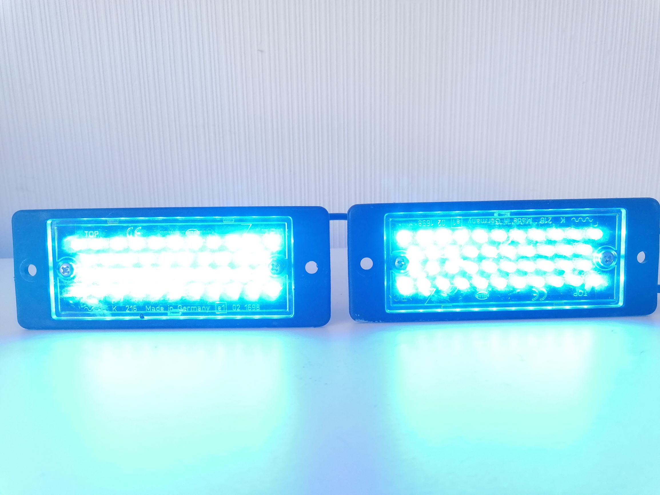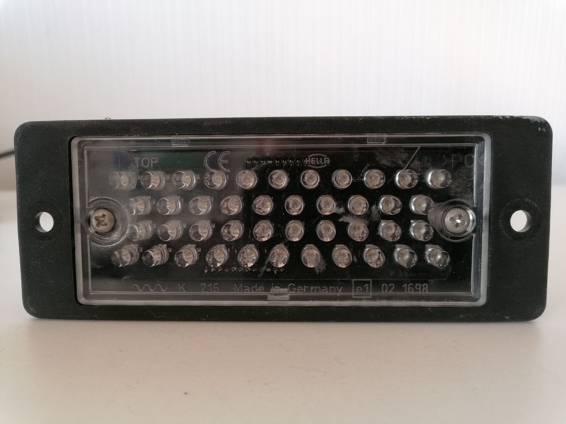 Es handelt sich bei den HWL-LED um Heckwarnleuchten für Einsatzfahrzeuge mit Blaulicht. Sie sichern das Einsatzfahrzeug nach hinten ab, wenn das Blaulicht durch den geöffneten Kofferraumdeckel nach hinten verdeckt wird. Durch den Einbaurahmen können die Leuchten in die Kofferraumdeckel versenkt eingebaut werden. Anhang 26760 Anhang 26759 Die Leuchten verfügen über 42 Leuchtdioden, die im ausgeschalteten Zustand klar sind. Auf der Scheibe der Leuchte findet sich neben dem Zulassungszeichen "~~~K 216" noch ein "Z". Dieses zeigt an, dass es sich bei der HWL-LED um eine Leuchte zur temporären Absicherung mit einer Abstrahlrichtung nach hinten handelt. Weiter findet sich eine "e1" im Quadrat und die Zahlen "02 1698". Oben links in der Ecke steht "TOP", dies gibt die Einbaulage der Leuchte vor. Anhang 26764 Die Stromversorgung der Leuchte erfolgt über ein etwa 40 cm langes Kabel auf der Leuchtenrückseite. Anhang 26761 Auf der Leuchtenunterseiteseite findet sich ein Typenschild. Es gibt Auskunft darüber, welche Kabelfarbe welche Funktion hat, welche Betriebsspannung die Leuchte benötigt und welche Artikelnummer die HWL-LED hat. Die beiden Leuchten können miteinander syncronisiert werden. Dazu wird das gelbe Steuerkabel der einen Leuchte mit dem grünen Steuerkabel der anderen Leuchte verbunden. Anhang 26763 Das Blinkmuster der HWL-LED ist das bekannte Blinken (Hauptimpuls gefolgt von zwei kurzen Nachimpulsen). Die Farbe ist ein sattes blau. Zur temporären Absicherung ist LED-Technik die 1. Wahl, da der geringe Stromverbrauch die Fahrzeugbatterie kaum belastet. Anhang 26762 |