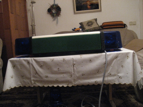 Stromaufnahme: Bei 12V 5,5A, bei 24V 3,5A. Ich habe die 24V H1 Glühlampe durch eine 12V H1 ausgetauscht, da sie dann beim Betrieb von 12V heller ist. Da ich nur ein 12V Netzteil habe, dreht sie sich auch so langsam. Bescheibung: Diese Leuchte ist zum schnellen Aufsetzen auf das Wagendach aus Stahlblech geeignet. Die hohe Haftkraft des ringförmigen Magneten gewährt einen sicheren Sitz der Leuchte auf dem Fahrzeugdach. Eine umlaufende Gummilippe verhindert Kratzer beim Aufsetzen oder Abnehmen. Die Spannungsversorgung wird durch ein besonders hochwertiges Spiralkabel und einen DIN-Stecker nach ISO 4165 (Universalstecker) hergestellt. Die KL Rotafix Magnet hat das bewährte Hella-Parabol-Reflektorsystem, bei dem eine zentral im Reflektor sitzende und mitdrehende H1 Halogenbirne für eine permanent fokussierte Abstrahlung des Warnsignals sorgt. Der Antrieb erfolgt durch einen Motor mit Schneckenantrieb. Kursivgeschriebenes; Quelle: RKL-Shop <object width="425" height="344"> <embed src="http://www.youtube.com/v/hCIMhnzep04&hl=de_DE&fs=1&" type="application/x-shockwave-flash" allowscriptaccess="always" allowfullscreen="true" width="425" height="344"></object> |