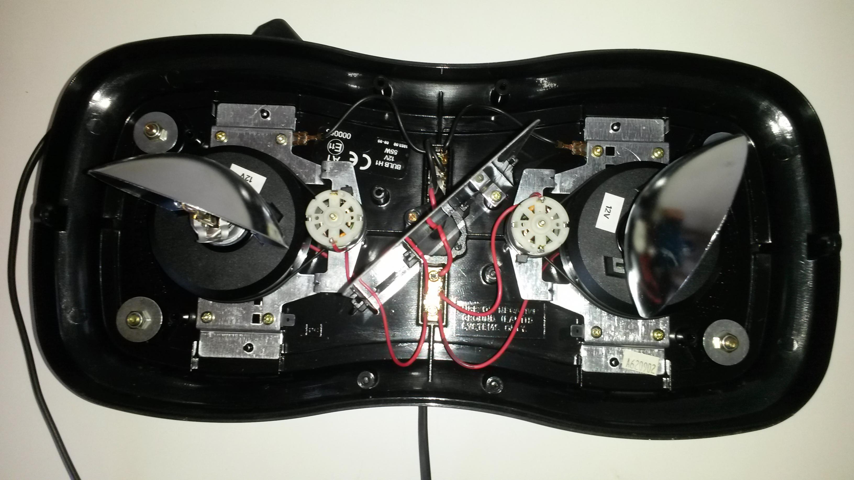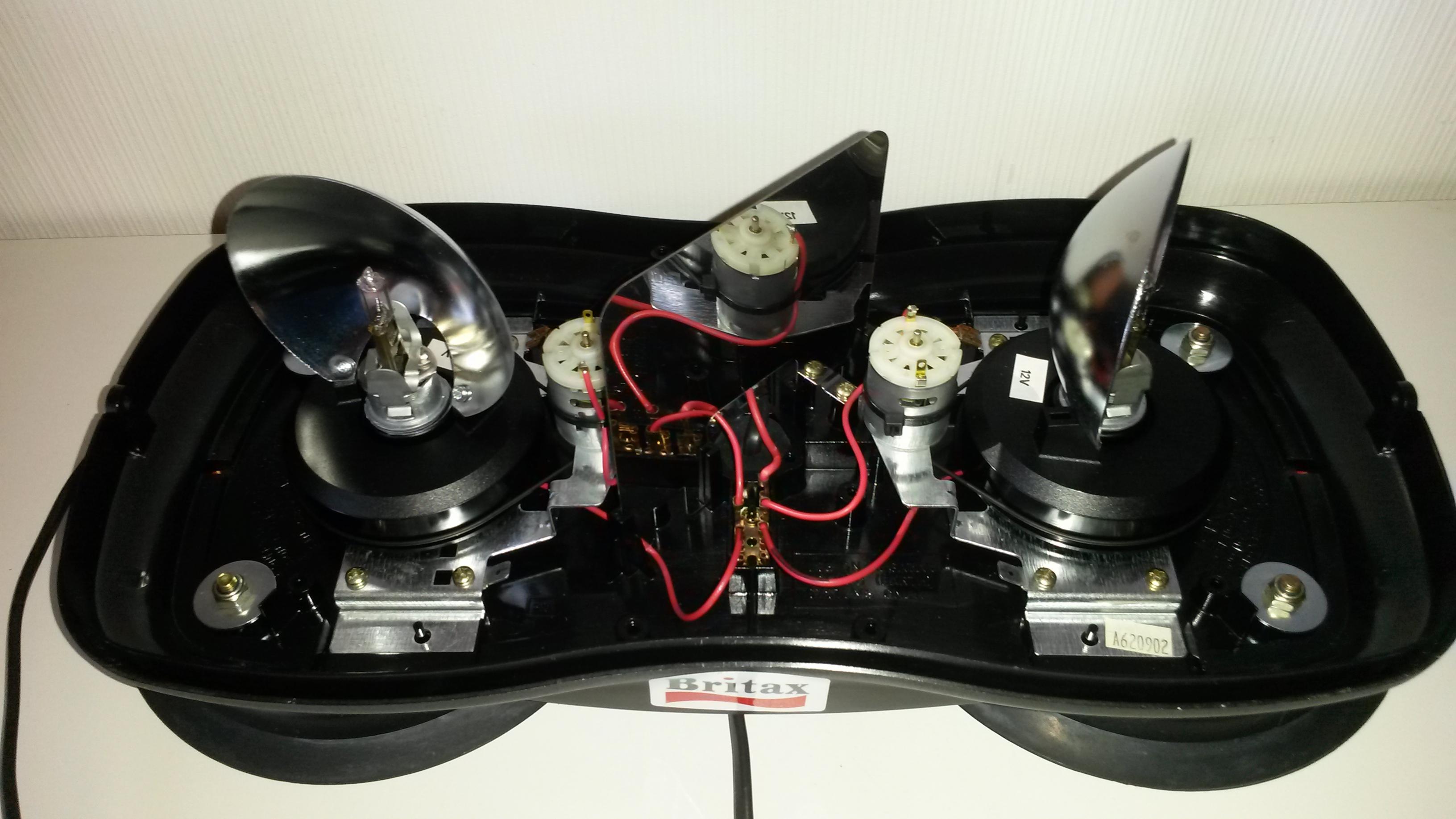 Es handelt sich dabei um einen Mini-Gelblichtbalken mit Magnetbefestigung. Die Betriebsspannung beträgt 12 Volt, die Stromversorgung wird durch ein etwa 2 Meter langes, glattes Kabel mit Zigarettenanzünder-/DIN-Stecker hergestellt. Der Balken ist 420 mm breit, ca. 185 mm hoch und etwa 200 mm tief. Anhang 23580 Zwei groß dimensionierte, vollgummierte Magneten halten den Mini-Lichtbalken auf geeigneten Untergründen (Stahldächern, pp.) in Position. Die Gummierung verhindert, dass die Magneten Schrammen im Lack hinterlassen. Weiter ist eine Dichtlippe aus dem Gummi geformt. Sie erhöht die Rutschfestigkeit. Die beiden Magneten halten den Aerolite lt. Herstellerangaben bis 80 mp/h, bzw. 112 km/h auf dem Fahrzeugdach. Ein entsprechender Warnhinweis ist auf den Magneten aufgeklebt. Zum lösen des Balkens sind an der Außenseite der Dichtlippe Griffe. Anhang 23582 Die Lichthaube ist mit zwei Schrauben am Gehäuse verschraubt. Weiter findet sich auf jeder Seite der Lichthaube das Typenschild des Mini-Lichtbalkens. Anhang 23581 Ein weiteres Typenschild ist innen aufgeklebt Anhang 23587 Im Inneren des Lichtbalkens drehen sich zwei Metalldrehspiegel um je eine feststehende H1-Glühlampe. Die Drehspiegel werden über einen Treibriemen von je einem Motor (Einbaulage: auf dem Kopf stehend) angetrieben. Anhang 23583 Jedes der beiden Lichtmodule (Drehspiegel, Glühlampe und Motor) ist auf einer Trägerplatte angebracht, die mittels vier Schrauben auf die Grundplatte des Lichtbalkens geschraubt ist. Anhang 23585 Zur Verstärkung der Warnwirkung ist zwischen den beiden Lichtmodulen ein Spiegel eingebaut, der im 45° Winkel zwischen den beiden Drehspiegeln steht. Anhang 23584 Zusammenfassend ist der Britax Aerolite 420 M ein durchaus brauchbarer Mini-Lichtbalken für alle, die keine Hochgeschwindigkeitsfahrten machen. Das Lichtsignal ist gut wahrnehmbar und durch den Spiegel für Deutschland auch untypisch. Der Antrieb ist angenehm leise. Die Verarbeitung ist robust und wirkt durchdacht. |