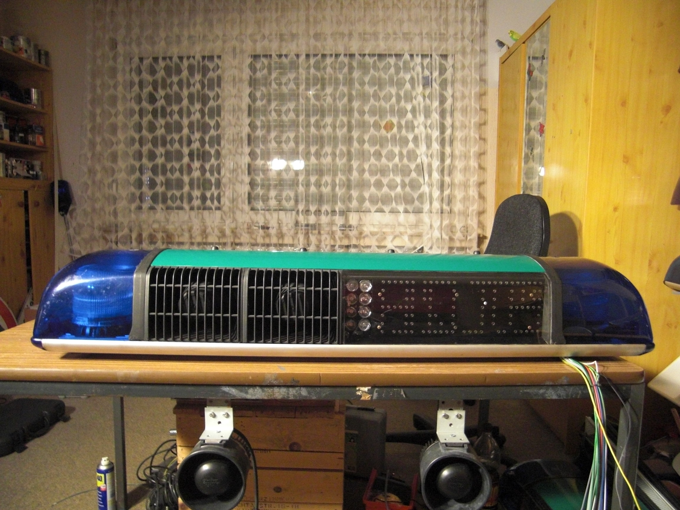 Ich glaube es gibt keinen anderen Balken der so viele verschiedene Hauptkennleuchten haben kann. Dreher groß, Dreher klein, Duodreher groß, Duodreher klein, Tri-Optic, 3-Glaslinsenoptik, Xenondoppelblitz und jetzt auch noch zig verschiedene LED Module. Ein Video kommt natürlich auch noch vom Balken! |