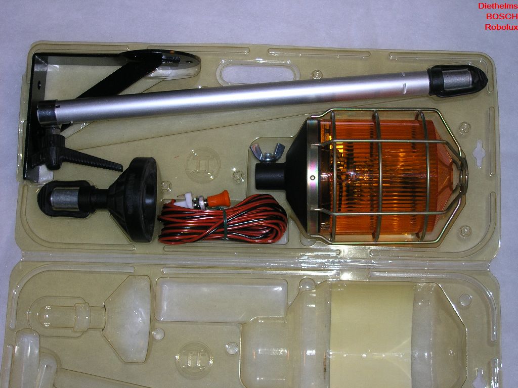 Gibt es außer der 7 782 319 011 (orange 24 V, 70 W H1) auch andere Versionen? Anhang 6903 Text auf der transparenten (und nun schon vergilbten) Verpackung: BOSCH Robolux Die flexible Rundumkennleuchte für harten Einsatz - bruchgeschützt durch stabilen Gitterkorb und flexiblen Gummifuß - perfekter Rundumlauf durch exakt ausgewuchtete Drehplatte - Parabol-Reflektor aus Aluminium für blendfreies, intensives Licht - schnell und einfach montiert |