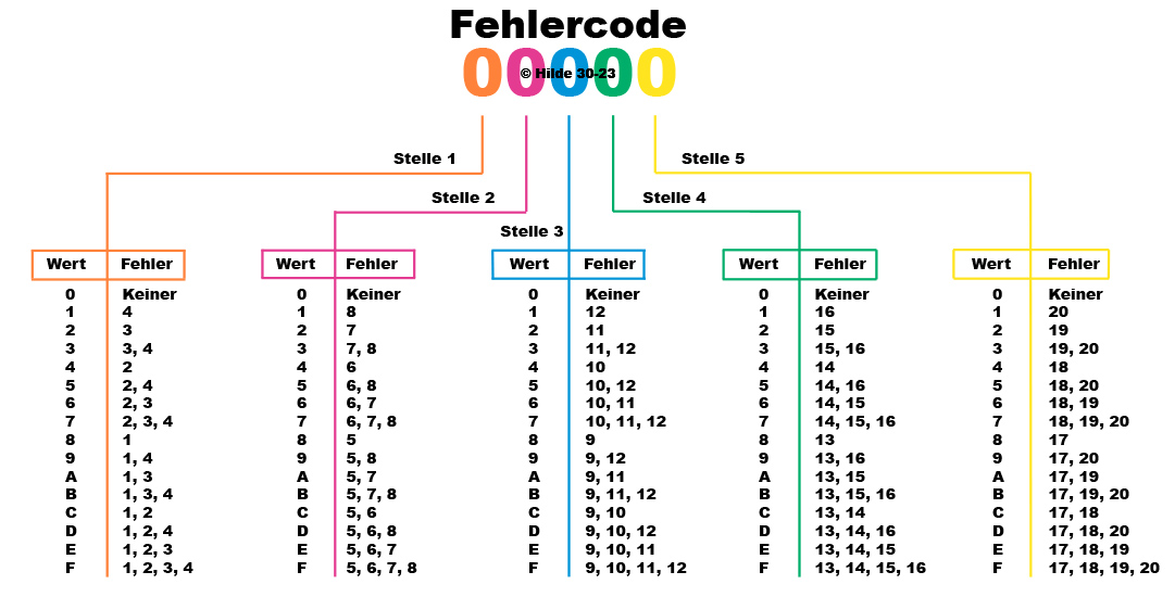 Fehlercode auch mehrere Fehler beinhalten kann. Dazu hier noch dazu die Fehlerliste mit den Beschreibunden.