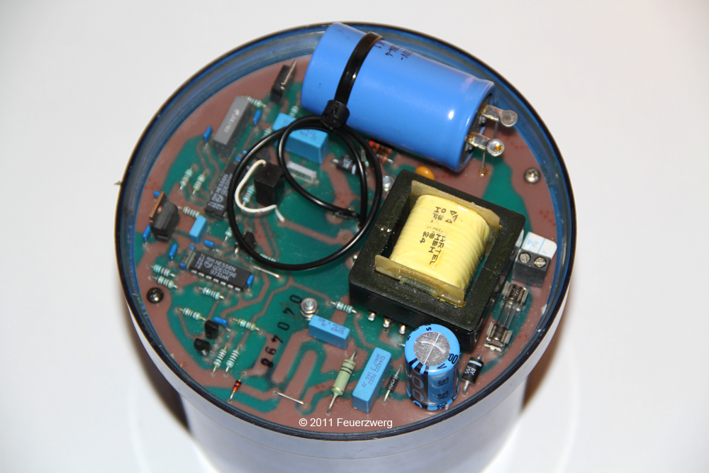 Die Blitzelektronik ist an die Haube angeschraubt und kann dann auf einen Sockel aufgebracht werden. Desweitern fand die Elektronik in der Hänsch