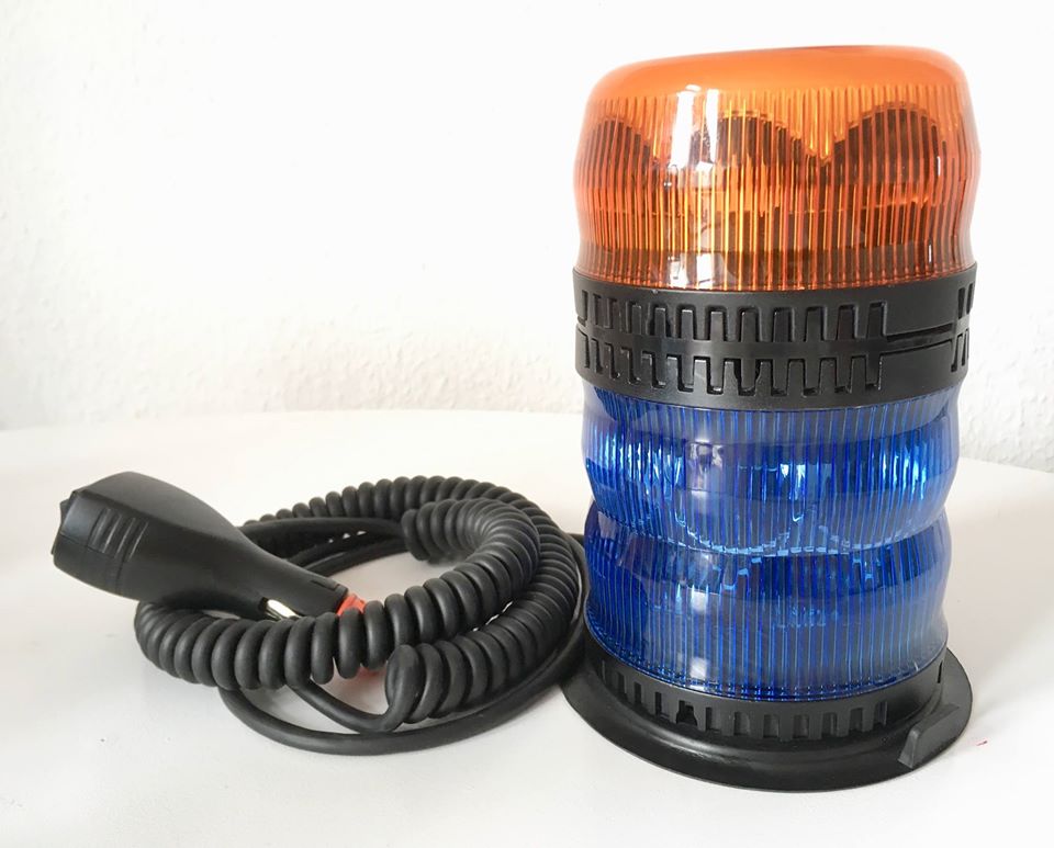 Die blaue Kennleuchte hat Doppelblitz , das gelbe Modul ein Rotationsmuster.
