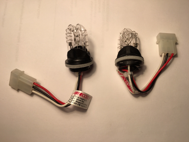 Ich habe eine Frage. Und zwar habe ich in einer Kiste folgende Blitzbirnen von Code3 USA vorgefunden: Die Dinger haben einen dreipoligen männlichen AMP-Stecker: Ebenfalls dabei waren noch passende Halterungen, die man anscheinend in den Scheinwerfer-Reflektor befestigt. In einer anderen Kiste habe ich folgendes Steuergerät gefunden: Auch hier sind die Ausgänge männliche AMP-Stecker: Frage: Passt das Steuergerät zu den Blitzbirnen? Wenn ja: wäre es nicht etwas unklug um laufenden Betrieb auf die Pins fassen zu können? Woher bekomme ich passende Kabel? Warum sind die Anschlüße bei den Code3 4-Kanal-Hideaways weiblich und bei den 2 Kanal männlich? |