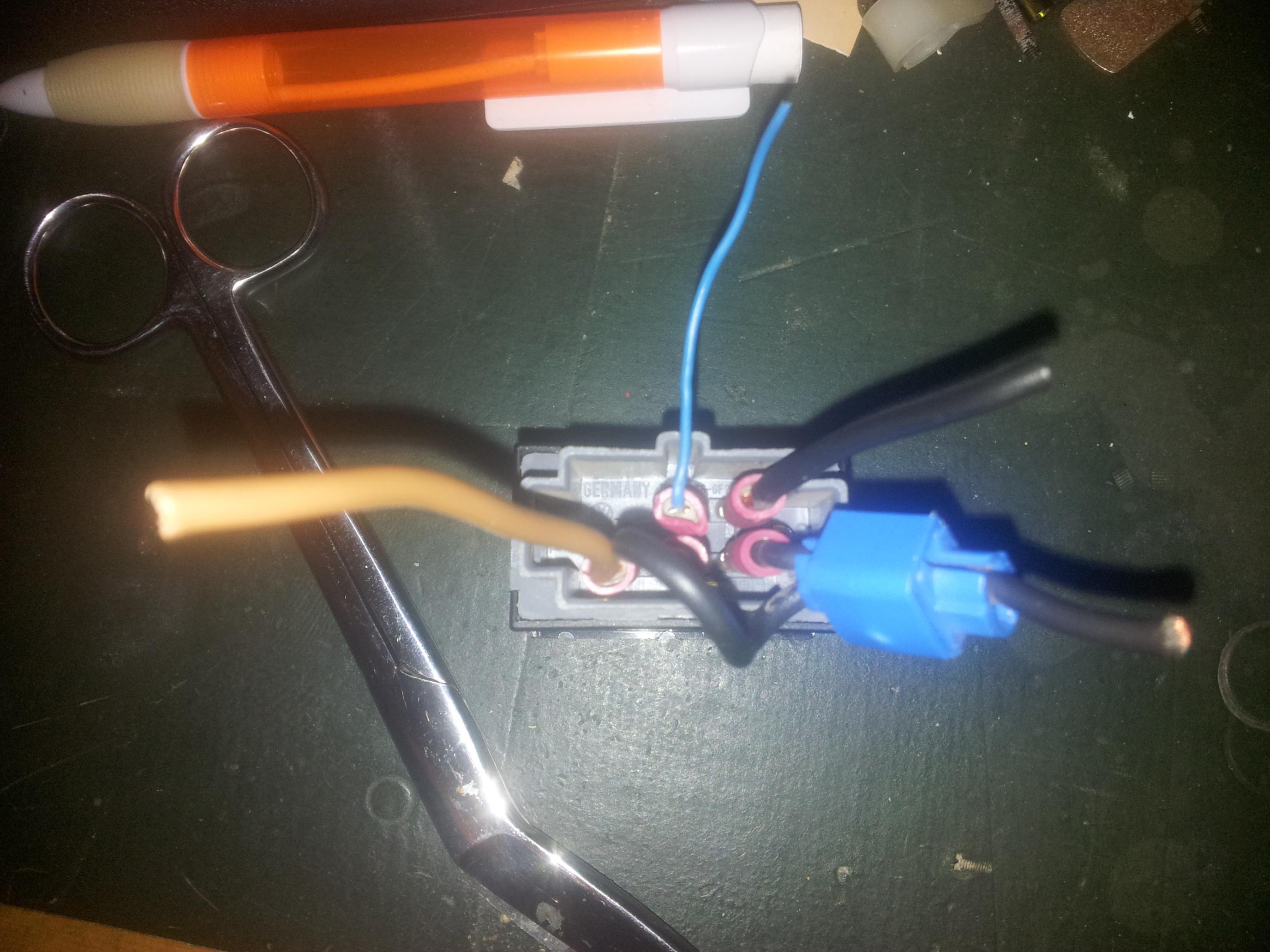 leider ist der Stecker nicht da, aber kabel mit flach Kontakt Stecker sind trauf.. habe nur 5 Anschlüsse, Anschluss 1 und 3 sind zusammen gefasst, heißt 4 freie kabel.. 3mal plus 1mal masse.. auf der Rückseite habe ich endlich das VW Zeichen gefunden innen drin im Stecker |