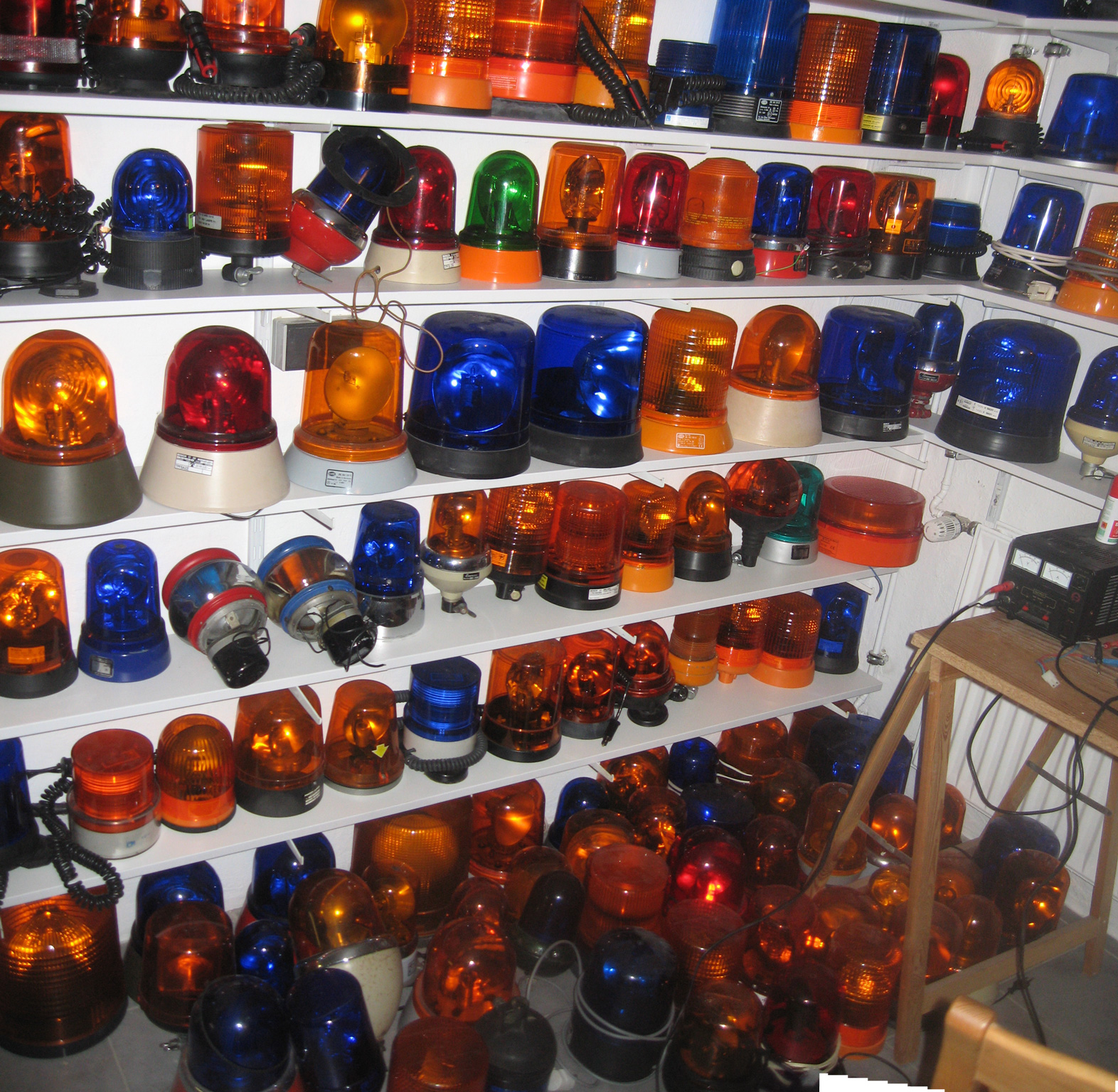 Ein paar Kisten sind nicht ausgepackt, ein paar Balken haben noch keinen Platz, aber kommt... Diese Leuchten sind auch noch vollkommen unsortiert, muss ich auch noch alles machen *puh*. Hier ein paar Eindrücke von einem Teil des "Blaulichtmuseums". Ich denke, bis zur endgültigen Sortierung dauerts noch ewig, aber ich gelobe auch einzelne Fotos nach und nach zu machen: |