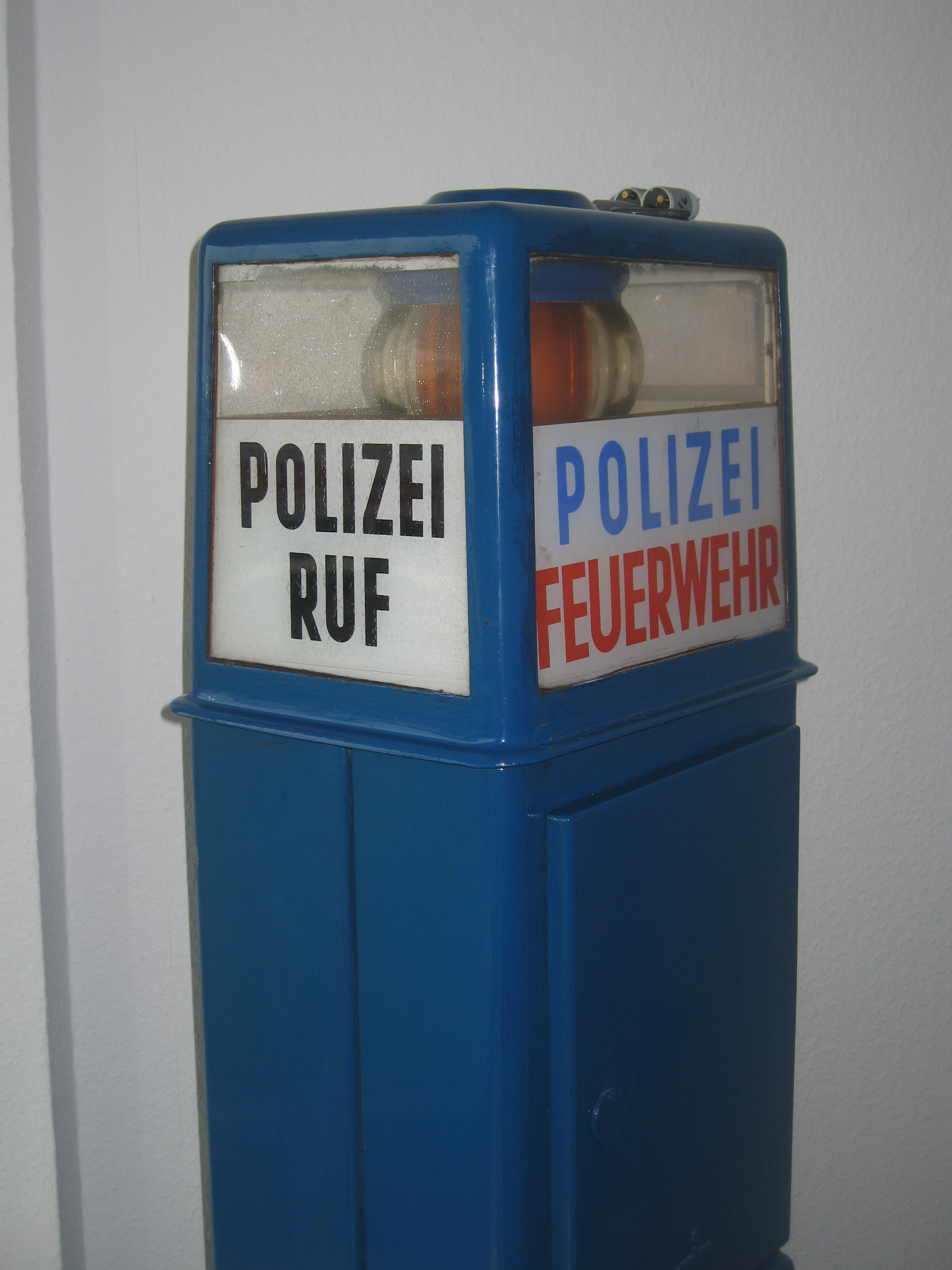 Eine der letzten 9 verbliebenen Hamburger Notrufsäulen aus den 50er jahren in TOP-Zustand und mit quasi neuer, gelber Auer-Leuchte. Bessere und detailliertere Fotos folgen auch noch. |