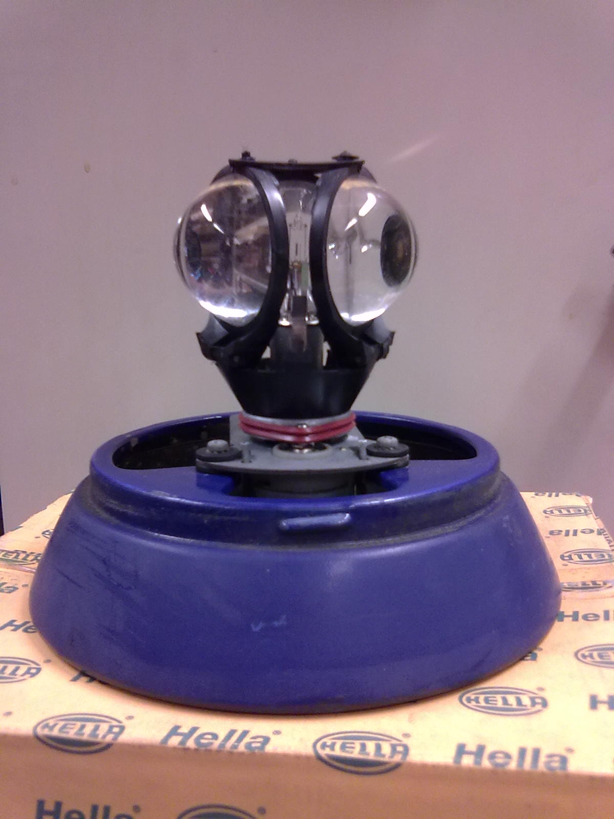 Eine ähnliche Leuchte hatte ich auch mal, nur zum zerlegen, aber das war damals ein Hella 24V- Motor mit Pintsch Bamag Linsen Optik, dann 12V Glühlampe und an 12V angeschlossen hat die Umdrehungszahl gestimmt.