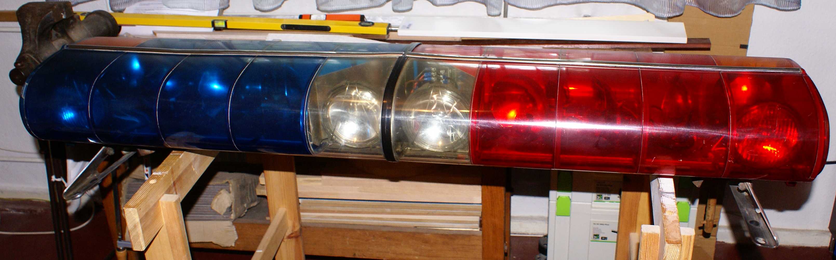 Letzte Woche habe ich von Julius (uniqueUSimports) einen original LAPD Aerodynic 24 EAH-T erhalten. ![]() ![]() ![]() Ausstattung: 6 Dreher, 2 Steady Burn Sealed Beams nach vorne, 2 Rear Flasher, 2 Takedowns, Hella Alley Lights. Zustand war für das Alter von 17 Jahren (Baujahr 1994) sehr ordentlich, aber ein Paar Kleinigkeiten gibt es dann doch zu tun.Hier der Zustand nach der groben äußeren Reinigung. |