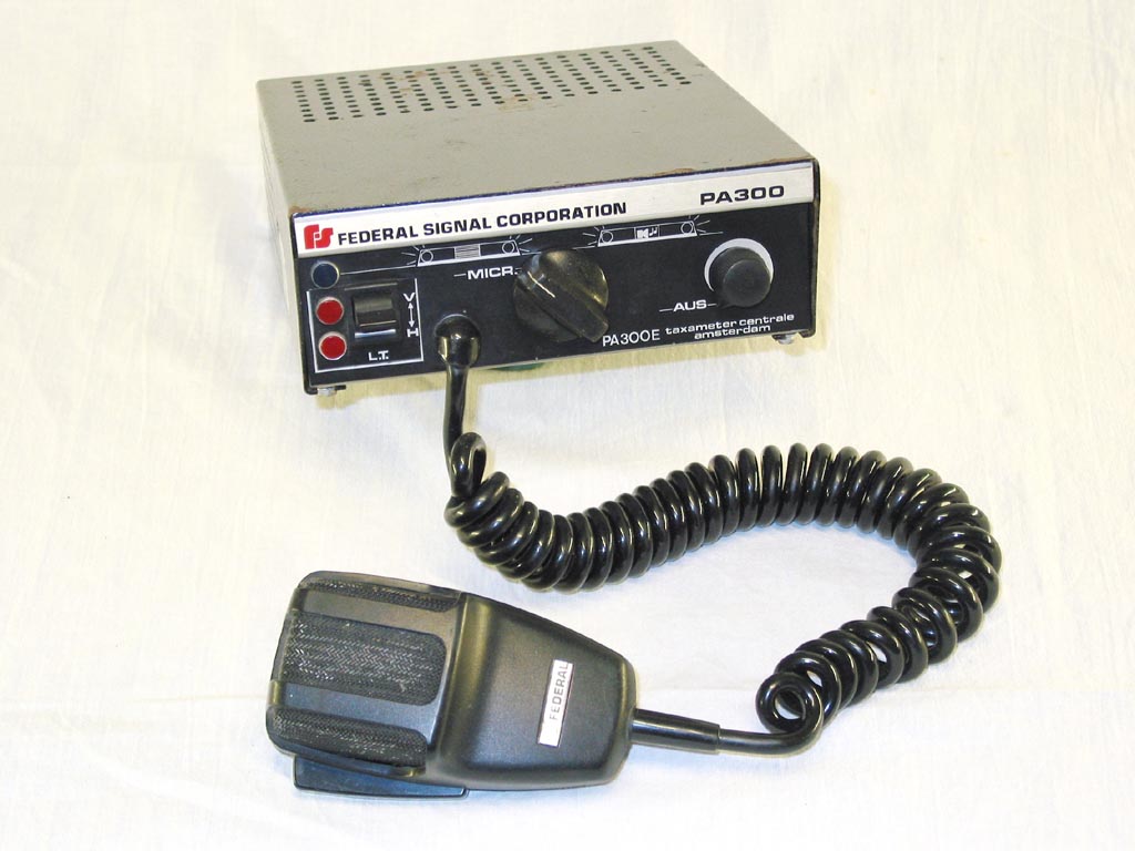 Bilder folgen später ... Die Schalterbox verfügt über 6 Schalterplätze, die je nach Bedarf, mit unterschiedlichen Schaltern belegt werden können. In diesem Fall sind 2 Wechselschalter mit Kontroll-Lämpchen, 2 Doppelschalter (4x Schließen), 1 Einzelschalter (2x Wechsler) und 1 Taster (2x Schließer) verbaut. Da ich keinerlei Unterlagen über diese Schalterbox habe und auch auf den Schaltern nichts steht, kann ich über die Belastbarkeit der Kontakte nur Vermutungen anstellen. Mehr als 10-15A würde ich ihnen aber nicht zumuten wollen. Das Gehäuse ist auf der Rückseite offen und die Kabel werden von den Schaltern direkt nach draußen geführt. Federal Signal – SW400SS Die Schalterbox verfügt über 4 Einzelschalter und einen 4 stufigen Schiebeschalter (off, 1, 2, 3). Die einzelnen Schalter sind unabhängig voneinander schaltbar und mit jeweils mit 20A belastbar. Der Schiebeschalter ist auf Pos.1 mit 20A und Pos. 2+3 mit zusammen 40A belastbar, wobei die jeweils folgende Stufe zur bereits aktivierten zugeschaltet wird. Die angeschlossenen Leuchten können also nur in der, durch die Beschaltung, festgelegten Reihenfolge aktiviert werden. Die Beschriftungsfelder sind Beleuchtet und der Schaltzustand wird mittels Lampen in den Schaltern bzw. mit den LED´s oberhalb des Schiebeschalters angezeigt. Auf der Rückseite befinden sich die integrierten Sicherungen was die Verkabelung sehr erleichtert. Federal Signal - PA-20A Interceptor (Federal Sign & Signal Co.) (Federal Signal Co.) Die Sirene kann Wail, Yelp, Hi-Lo und AirHorn. Außendurchsagen (Lautstärke regelbar) sind ebenso möglich wie Funkaufschaltung und Hupenringsteuerung. Das Mikrofon für Außendurchsagen wird mittels Stecker an der Unterseite angeschlossen. Es können wahlweise, bis zu zwei, 58W oder 100W Lautsprecher genutzt werden. Die Impedanz des/der Lautsprechers sollte 11Ohm betragen! Federal Signal - PA200E Die Sirene hat die niederländische Tri-Ton Signaltonfolge (wie die RTW´s). Die Bedienung erfolgt über einen Drehschalter mit 3 Schaltstellungen. In der ersten Schaltstufe ist nur die Außendurchsage (Lautstärke regelbar) möglich. Auf Stufe 2 wird "das Licht" eingeschaltet und auf Stufe 3 wird zusätzlich zum "Licht" noch die Tonfolge aktiviert. Das Mikrofon für Außendurchsagen wird mittels Stecker an der Unterseite angeschlossen. Als Lautsprecher ist jeder 58/100W 11Ohm Lautsprecher geeignet. Außerdem verfügt die PA200 über einen separaten Schalter füt z.B. "Gelblicht" oder eine zusätzliche Heckkennleuchte. Der Schaltzustand kann mittels einer Kontrollleuchte angezeigt werden (extra Eingang) Da ich auch zu dieser PA200 keinerlei Unterlagen finden konnte, mußte als erstes die Steckerbelegung ermittelt werden. Federal Signal – PA200E gesig Die PA200E war, zusammen mit einem TwinSonic, in einem österreichischen RLFA2000 verbaut. Die Sirene verfügt über die österreichische Feuerwehr Signaltonfolge. Die Bedienung erfolgt über einen Drehschalter mit 3 Schaltstellungen. In der ersten Schaltstufe ist nur die Außendurchsage (Lautstärke regelbar) möglich und auf Stufe 3 (auf Stufe 2 tut sich nix, und ist auch nicht beschriftet ???) wird die Tonfolge aktiviert. Das Mikrofon für Außendurchsagen wird mittels Stecker an der Unterseite angeschlossen. Als Lautsprecher ist jeder 58/100W 11Ohm Lautsprecher geeignet. Da ich zu dieser Sirene keinerlei Unterlagen finden konnte, mußte als erstes die Steckerbelegung ermittelt werden. Neben der Umrüstung Tonfolge wurde noch parallel zum Ein/Aus Schalter eine Art Fernansteuerung eingebaut. (vergleichbar mit Zündplus) Liegt also nur die Grundspannungsversorgung an (wie bei der Standard PA200) kann man zwar die Sirene (über den normalen Ein/Aus Schalter) einschalten und Außendurchsagen machen, aber es läßt sich nicht die Tonfolge aktivieren. Erst durch anlegen von +12V an der „Fernansteuerung“ wird der Signalgenerator mit Spannung versorgt und die Tonfolge kann aktiviert werden. Außerdem wird die Sirene durch einen parallel zum Ein/Aus Schalter liegenden Leistungstransistor eingeschaltet. Beim aktivieren der Tonfolge wird ein Pin auf Masse geschaltet. Zu welchem Zweck genau, konnte ich noch nicht in Erfahrung bringen. Federal Signal – PA300 Die Sirene kann Wail, Yelp, Hi-Lo und AirHorn. Ein Mikrofon für Außendurchsagen (Lautstärke regelbar) ist ebenso vorhanden wie die Möglichkeit der Funkaufschaltung und der Hupenringsteuerung (Wechsel des Signaltones zwischen Wail und Yelp). Zum Anschluß des Lautsprechers steht entweder ein 58W oder 100W Ausgang zur Verfügung. Die Impedanz des Lautsprechers sollte 11Ohm betragen! Wie ich im nachhinein feststellen mußte, ist die Sirene etwas "verbastel". Der originale Anschlußstecker lag angeschmort (wohl auf Grund einer Überlastung) im Inneren und wurde durch einen ähnlichen ersetzt. Auch das Mikrophon war nicht mehr original, was aber nichts machte, da es nichts machte ![]() Als Ersatz für das defekte falsche Mikro habe ich ein MNCT-SB genommen und damit ich da nicht den Stecker abzwicken muß, ist die PA300 nun auf Klinkenstecker umgebaut. Die verwendete Einbaubuchse passte leider nicht zwischen Frontplatte und Platine, sodaß ich den Mikro-Anschluß kurzerhand in die ungenutzte Öffnung (Sicherungshalter bei älteren Modelen) auf die Rückseite verlegt habe. Federal Signal – PA300E Taxameter Centrale Amsterdam (mitlerweile nicht mehr Bestandteil der Sammlung) Die Sirene kann die niederländische Polizei (Zweiton) Tonfolge. Die Bedienung erfolgt über einen Drehschalter, der in der ersten Schaltstufe eine Kennleuchte aktiviert und auf Stufe 2 die Tonfolge dazu schaltet, und einem Wippschalter zur Steuerung von 2 Anhaltesignalgebern (entweder vorn oder hinten). Ein Mikrofon für Außendurchsagen (Lautstärke regelbar) ist ebenso vorhanden, sowie eine Hupenringsteuerung (bei aktiver Kennleuchte und Betätigung der Fahrzeughupe läuft die Tonfolge 2x ab). Für jeden der 3 Leuchtenkanäle ist ein Kontrolll