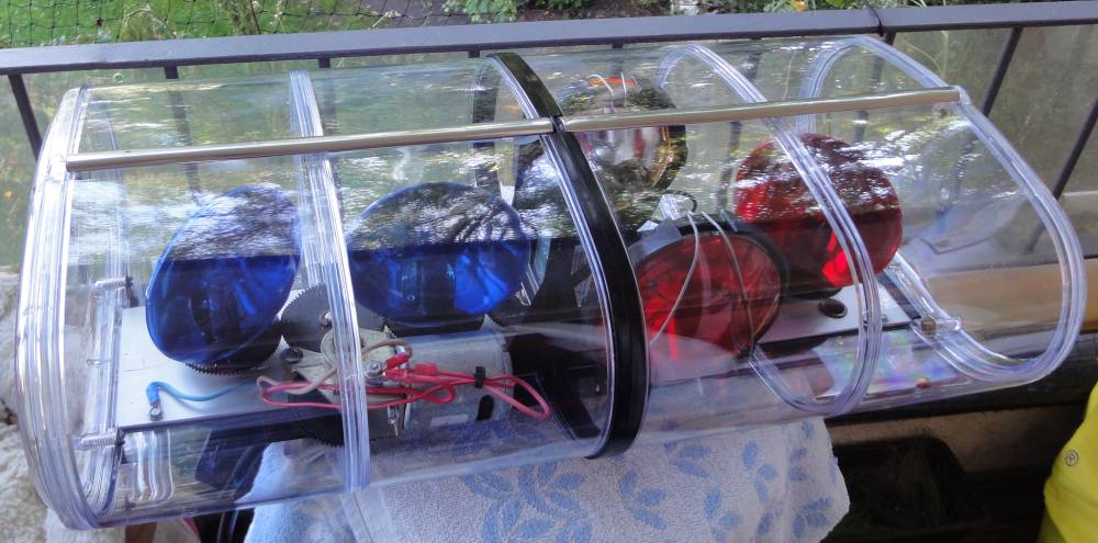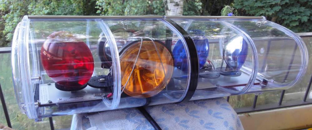 Es ist ein Modell 22 I (independent Rotators), zusätzlich ausgestattet mit einem dauerhaft leuchtenden roten PAR Leuchtmittel nach vorne und einem gelb blinkenden PAR nach hinten.
