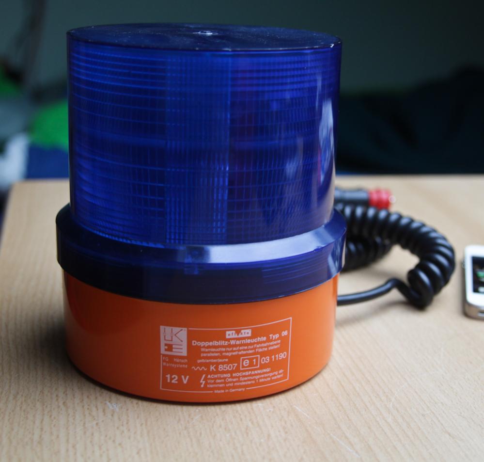 Die 06 hat eine Elektronik für 12V Betriebsspannung. Die eingelötete Endladungslampe macht viel Licht aber lässt sich leider nicht auswechseln wie bei der neueren Comet E. Gehalten wird die Leuchte durch einen innenliegenden Ringmagneten. Die Haftkraft ist für den Stand und eine langsame Umpositionierung des KFZ ausreichend aber keineswegs für die Fahrt über 30 km/h. Dafür ist die Leuchte aber auch gar nicht gedacht da die Zulassung sich sowieso nur auf die Benutzung im Stand bezieht.