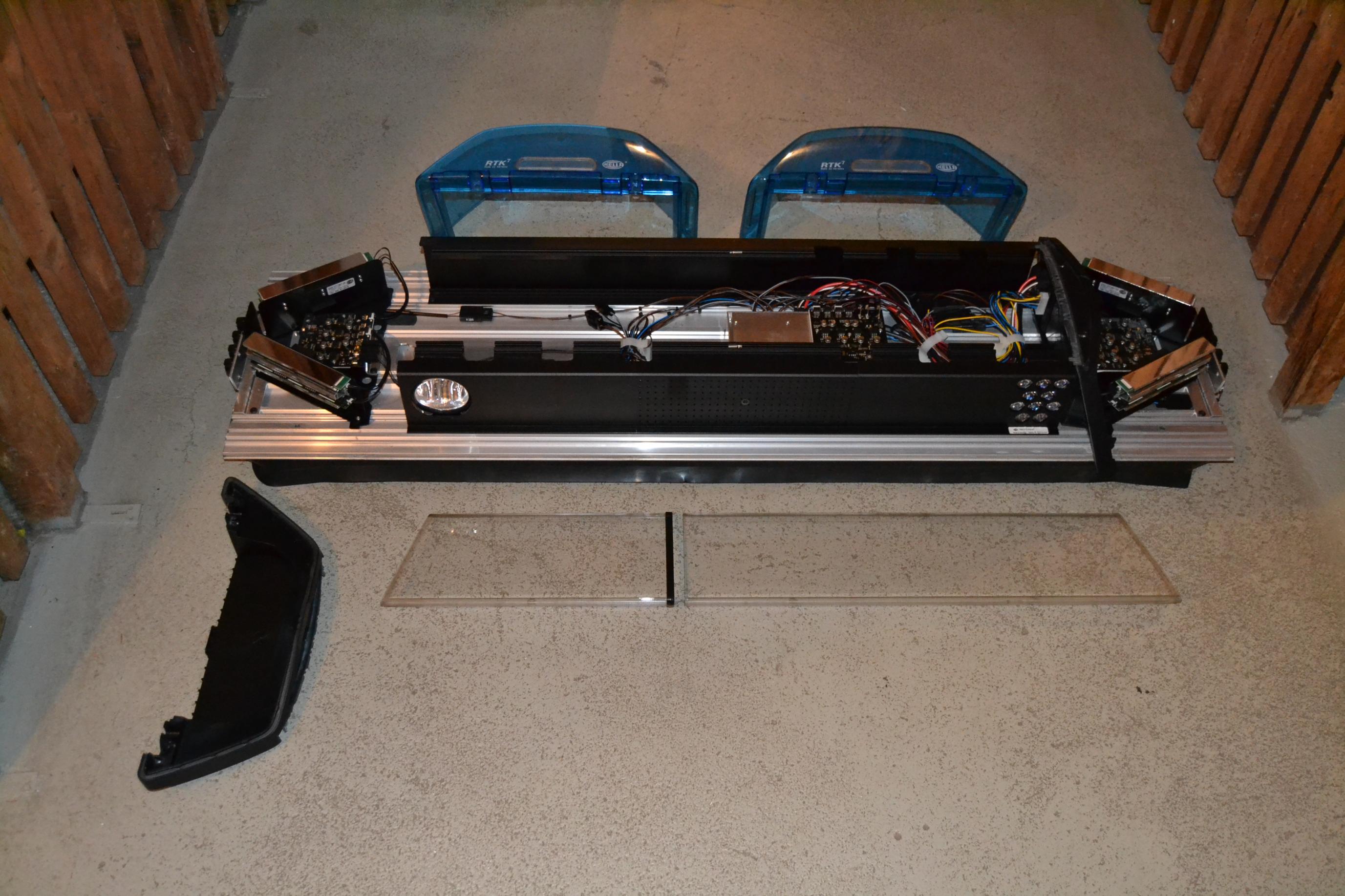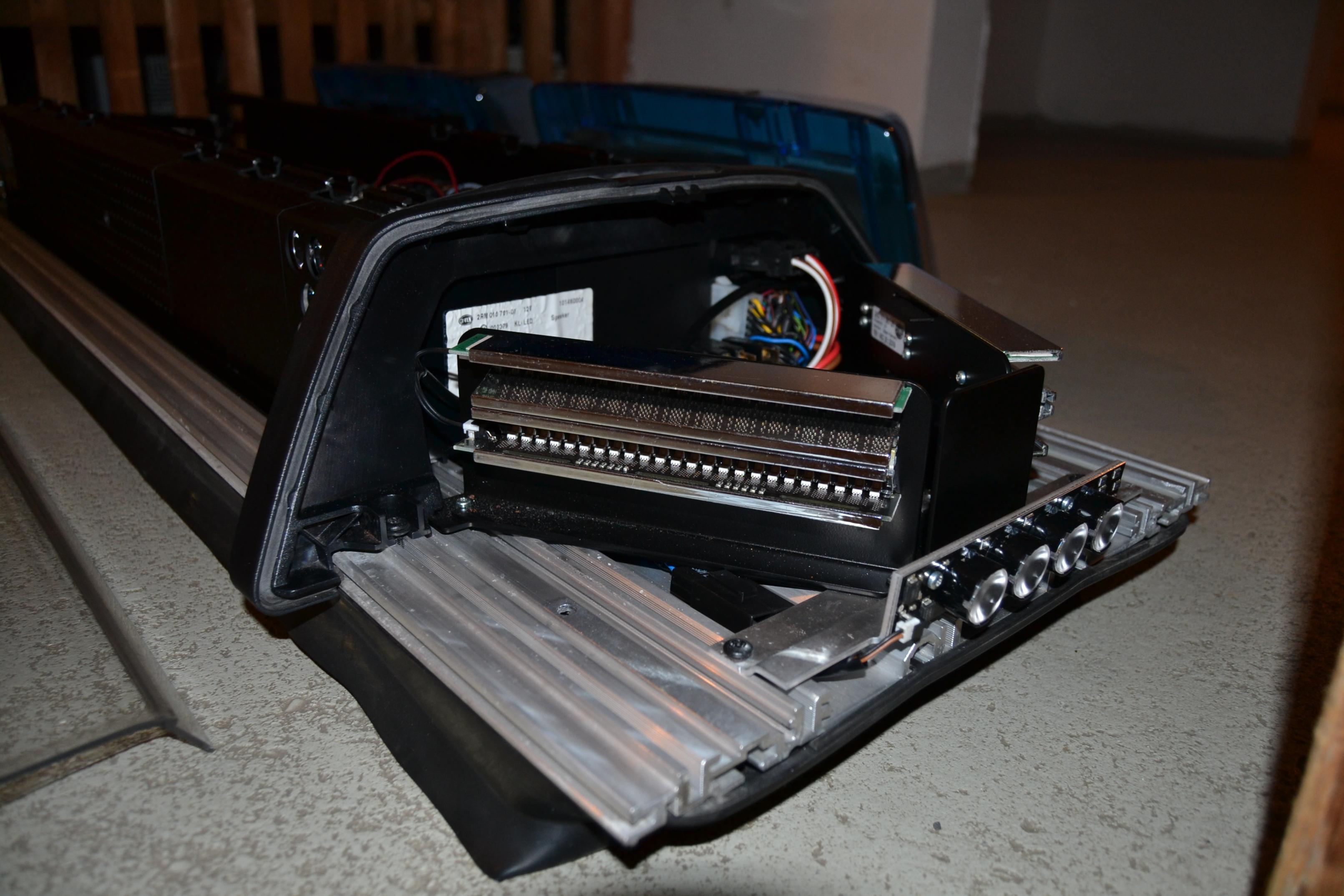 ich wollte Euch mal die RTK-7 etwas näher bringen, habe meine mal zerlegt und Euch ein paar Bilder gemacht (BSF / ASW / Module seitlich / Alley Lights usw.). Ich wollte aus mehreren Anlagen eine gut ausgestattete machen, aber das ist nicht so einfach. Erstens brauche ich andere Blenden (z.B. für das ASG- Matrix anstatt dem jetzigen ASG), zweitens müssen nachträglich eingebaute Bauteile in die Anlage programmiert werden (mit Hilfe des Hella- Programmier- Tool), sonst geht nichts. Meine persönliche Meinung nach heutigem Sachstand: Für Einsatzfahrzeuge ist es eine schöne Anlage, zum Basteln ist sie durch diese Programmiergeschichte eher schlecht geeignet. Aber seht selbst... ![]() ![]()