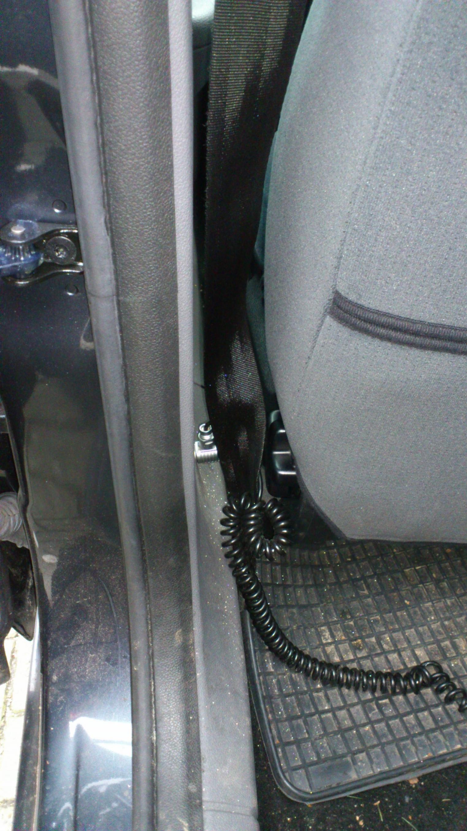 Der Beifahrer kommt auch mit dem Kabel in Konflikt: