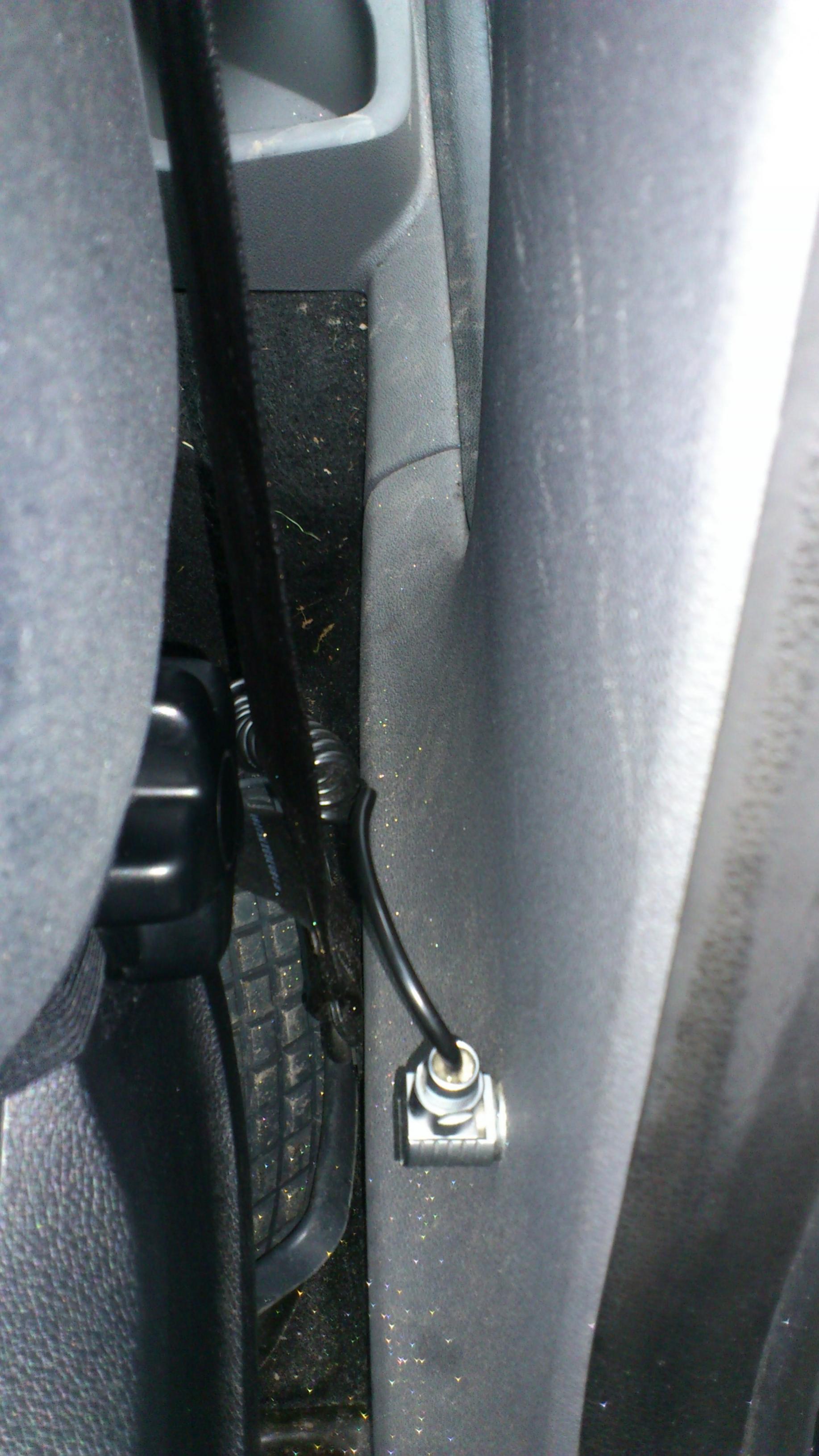 Die Lemo-Buchse für die Hänsch Movia D LED ist auf der Fahrerseite in der B-Säule unten montiert. Die Movia dazu steht im Fußraum vom Fahrer ganz am Sitz und unter der Gummimatte ist eine Metallplatte damit die Movia bleibt wo sie ist.
