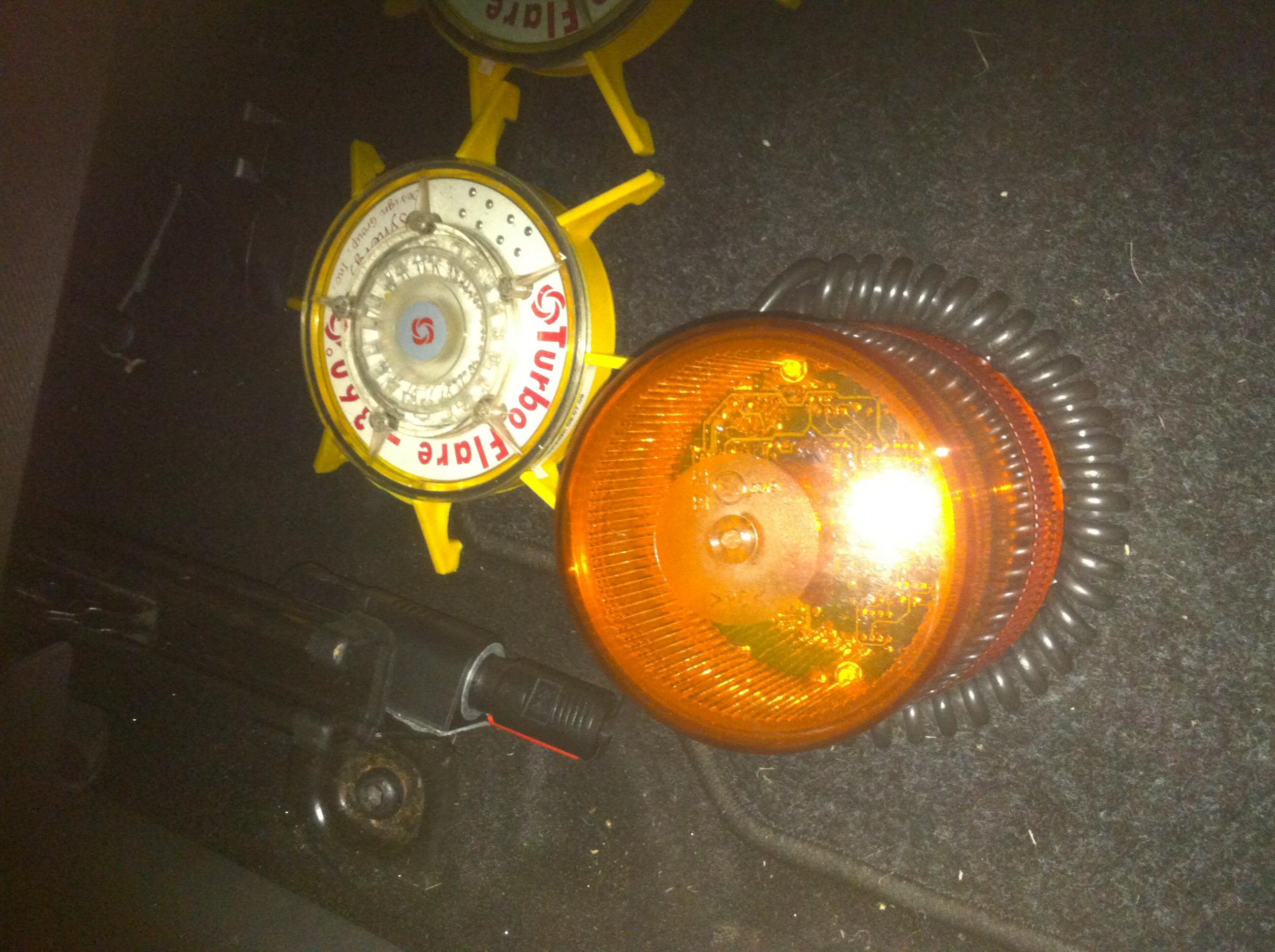 Ich habe für meine Kennleuchte (gelb) einen 12V Anschluss im Kofferraum.
