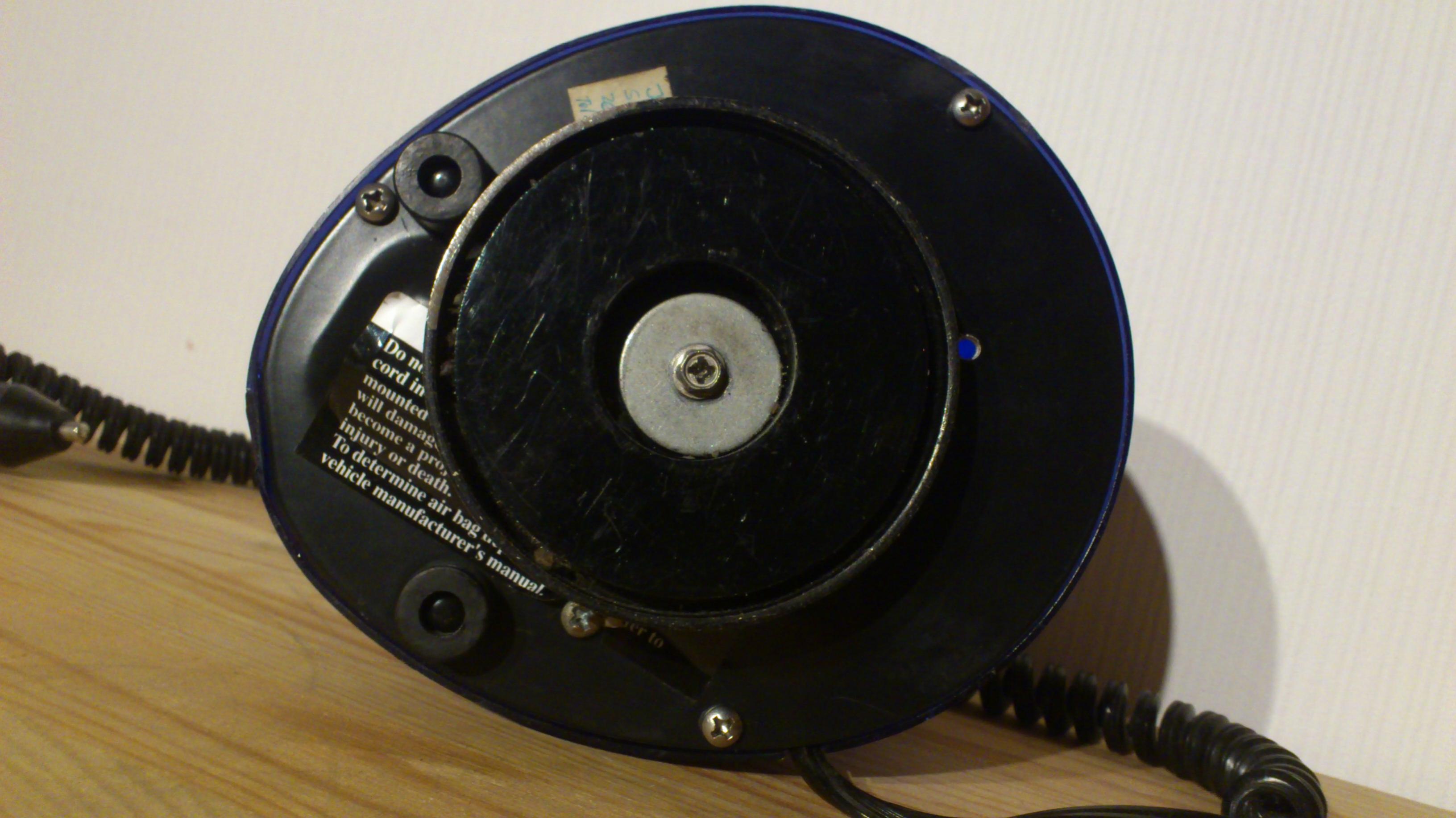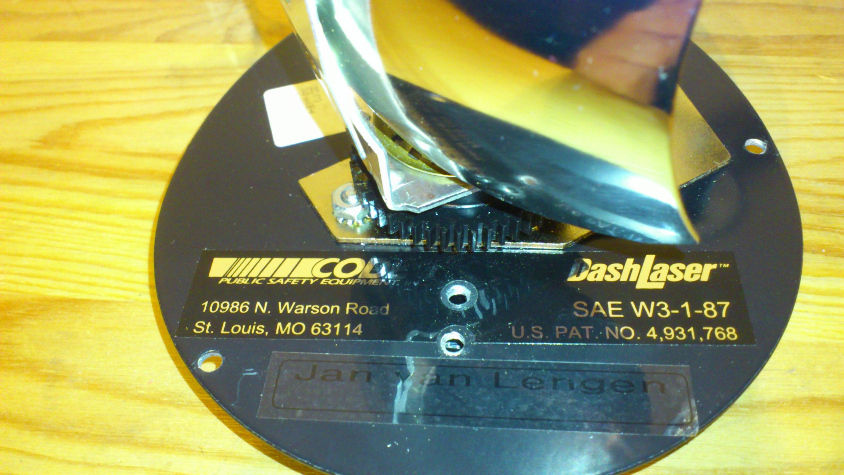 Ich habe ihn mir vor knapp 20 Jahren zusammen gespart, da ich unbedingt ein Blaulicht haben wollte. Nachträglich habe ich mir dann noch den Mehrfachspiegel und das passende Montagekit (hier nicht vorgestellt) gekauft. Der Mehrfachspiegel dient u.a. als Blendschutz für die Fahrzeuginsassen, wenn der Dashlaser als Dashlight im Fahrzeug eingesetzt wird. Auf der Rückseite ist das Code3-Logo angebracht und der Warnhinweis "WARNING: NOT FOR USE OUTSIDE MOVING VEHICLE" zu lesen. Mein Dashlaser hat eine EU-blaue Lichthaube. Sie ist von unten mit drei Schrauben mit der Grundplatte des Dashlasers verschraubt. Zur Befestigung dient ein schwarz lackierter Ringmagnet, der in einem Metallgehäuse an der Leuchtenunterseite befestigt ist. Auf dem fast verdeckten Aufkleber an der Unterseite ist zu lesen, dass der Dashlaser nicht im Wirkungsbereich von Airbags montiert werden darf. Nach dem Entfernen der Lichthaube ist der Blick auf das spartanisch anmutende Innenleben des Dashlasers frei. Ein feststehendes H1-Leuchtmittel, ein Spiegel mit Zahnrad, ein Motor mit einem zweiten Zahnrad - fertig. Der Knoten in dem schwarzen Kabel dient als Zugentlastung. Der Drehspiegel ist zweiteilig: ein Flächenspiegel dreht sich um das Leuchtmittel und eine Art Dach verhindert den Lichaustritt nach oben. Minimalismus in Reinkultur: Ein Kabelbinder hält das Kabel am Motorengehäuse in Position. Auf der Grundplatte ist ein weiterer Aufkleber angebracht, auf dem die Anschrift des Herstellers, die SAE-Nummer und die Nummer des US-Patents für den Dashlaser zu lesen ist. (Der Aufkleber mit meinem Namen ist das Produkt jugendlicher Besitzanzeige. )Der Mehrfachspiegel kann an den Dashlaser gesteckt werden und bricht dann das Licht des Drehspiegels mehrfach und leitet es in eine Richtung. Das Gehäuse ist aus schwarzem Kunststoff, die Spiegel sind aus Metall. Wie auf dem Bild erkennbar ist, ist ein Stück des Spiegelgehäuses abgebrochen. Dies ist auf eine der Schrauben der Lichthaube zurück zu führen - irgendwann war das Material an dieser Stelle gebrochen. Die Stromversorgung des Dashlasers erfolgt über ein etwa 90 cm langes Spiralkabel, das am Ende mit einem Zigarettenanzünderstecker versehen ist. Der Minuskontakt des Steckers besteht ausschließlich aus dem hervortretenden Metallstreifen. Mangels europäischer Zulassung ist der Dashlaser von Code3 ein reines Sammlungsstück. Der Magnetfuß hinterlässt garantiert böse Schrammen und Dellen im Dach und der Antrieb ist zahnradtypisch laut. Mit dem Mehrfachspiegel ist das Signalbild als sehr auffällig und für unsere Breitengrade untypisch zu bezeichnen. Als erste "richtige Kennleuchte" wird er jedoch stets einen festen Platz in meiner Sammlung haben. |