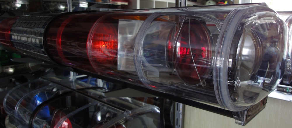 Ausgestattet mit 2x2 PAR 36 Drehern in weiß und rot und je 2 PAR 36 Flasher in rot nach vorne und orange nach hinten.