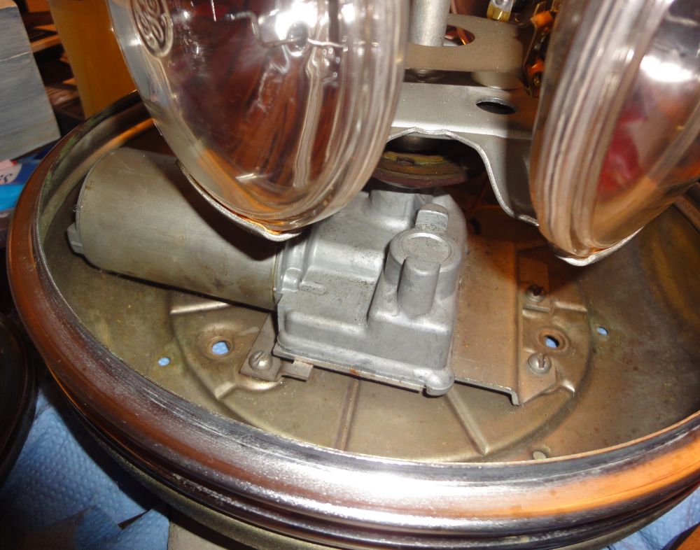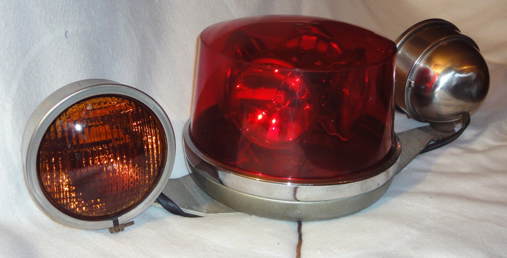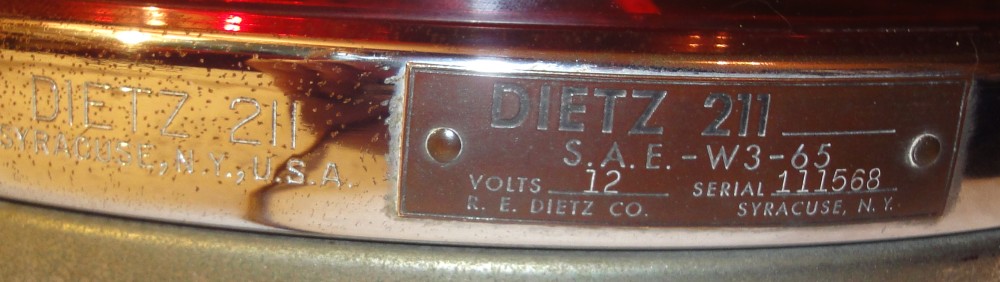 ):Dietz 211 Beacon, California Spec. - Hergestellt am 30.9.1968 - 4 klare PAR 36 Leuchten im Rotor - 1 rote PAR 46 steady burn Leuchte in PER- LUX 200 T Gehäuse - 1 gelbe PAR 46 rear flasher Leuchte in PER- LUX 200 T Gehäuse - der eigentliche Flasher ist im Sockel der Leuchte verbaut - als Besonderheit sind bei dieser Leuchte der Motor und Antrieb in einem geschlossenen Gehäuse verbaut |