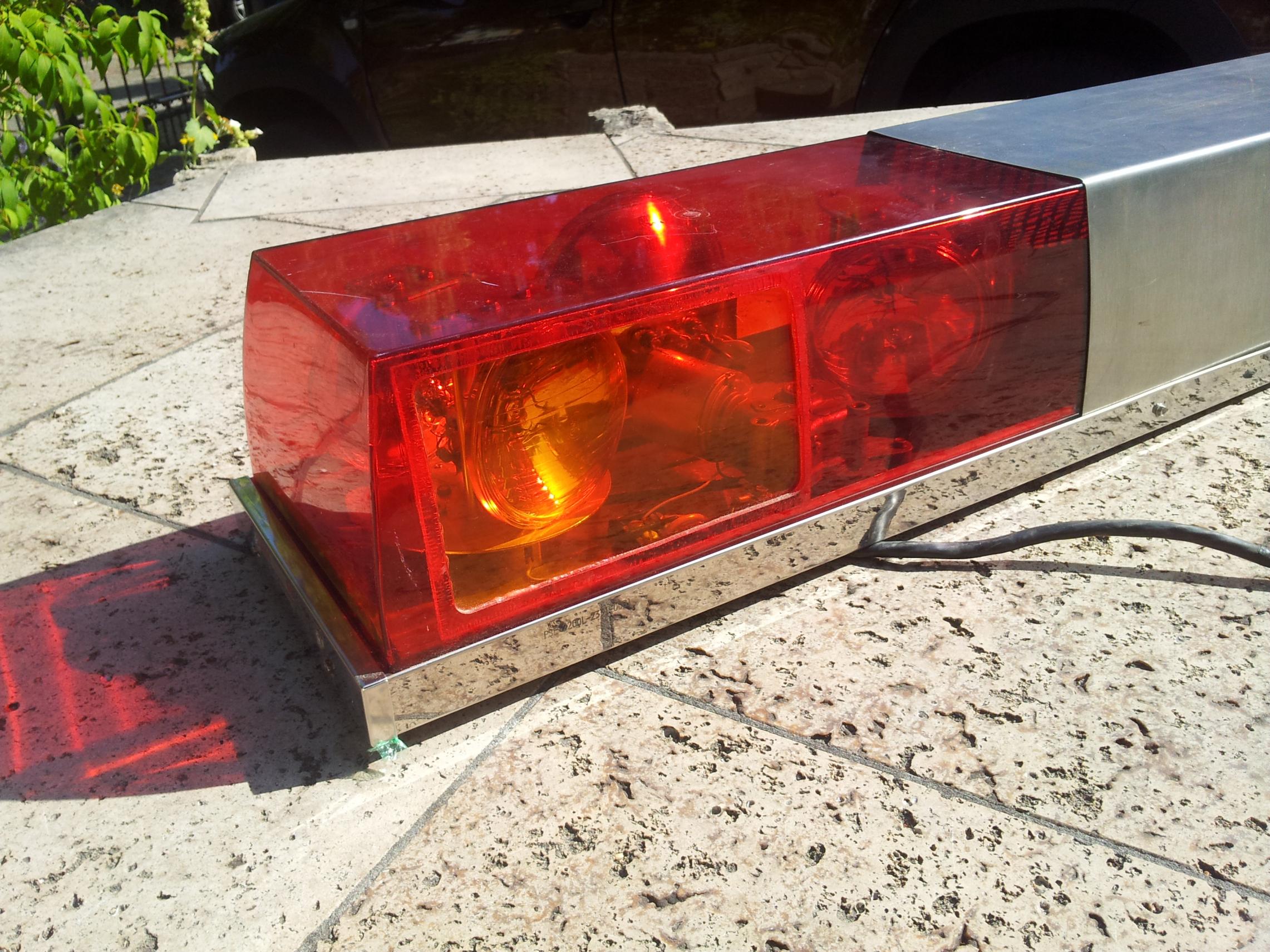 Ein Code 3 SD Cal Spec mit einseitigem select alert feature. - Hergestellt am 1.3.1976 - 4 rotierende PAR 36 Leuchtmittel mit dem für den SD typischen Lichtmuster - Antrieb über je einen gekapselten Motor je Seite mittels Zahnriemen - ein dauerleuchtendes PAR 46 Leuchtmittel unter der roten Haube nach vorne Das sogenannte select alert feature, hier einseitig verbaut unter der roten Haube bewirkt das auf dieser Seite der Motor zwar alle Leuchten dreht, aber nur die PAR36 die den orangenen "Cutout" passiert für diesen Zeitraum leuchtet. Diese Ausstattung war auch beidseitig zu erhalten, ist aber noch bei weitem seltener. Es handelt sich bei diesem Balken um das direkte "Konkurrenzprodukt" zum Federal Signal Twinsonic CTS und ich freu mich ehrlich gesagt riesig diesen Balken in guten Zustand in meiner Sammlung zu haben. Auch wenn er kleine "Schrämmchen" des Alltags hat, so bleibt er bei mir genau so erhalten, denn eigentlich kann man ihn nur schlechter machen beim Versuch diese zu beseitigen.