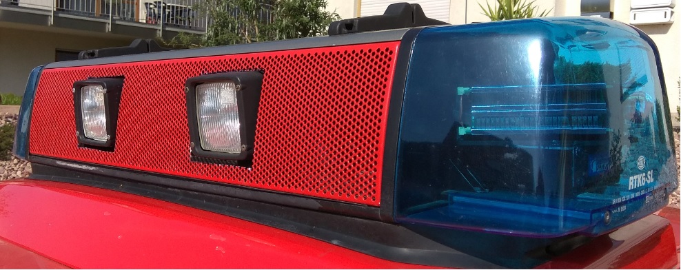 Das Blitzmuster ist Doppelblitz Synchron... Bin mir aber noch nicht sicher ob ich das so lasse. Die Halterungen passten nicht... Ich hab mir bei uns im Geschäft aus schwarzem Kunststoff welche Fräsen lassen. Auch mussten die Ausschnitte der Blende angepasst werden.
