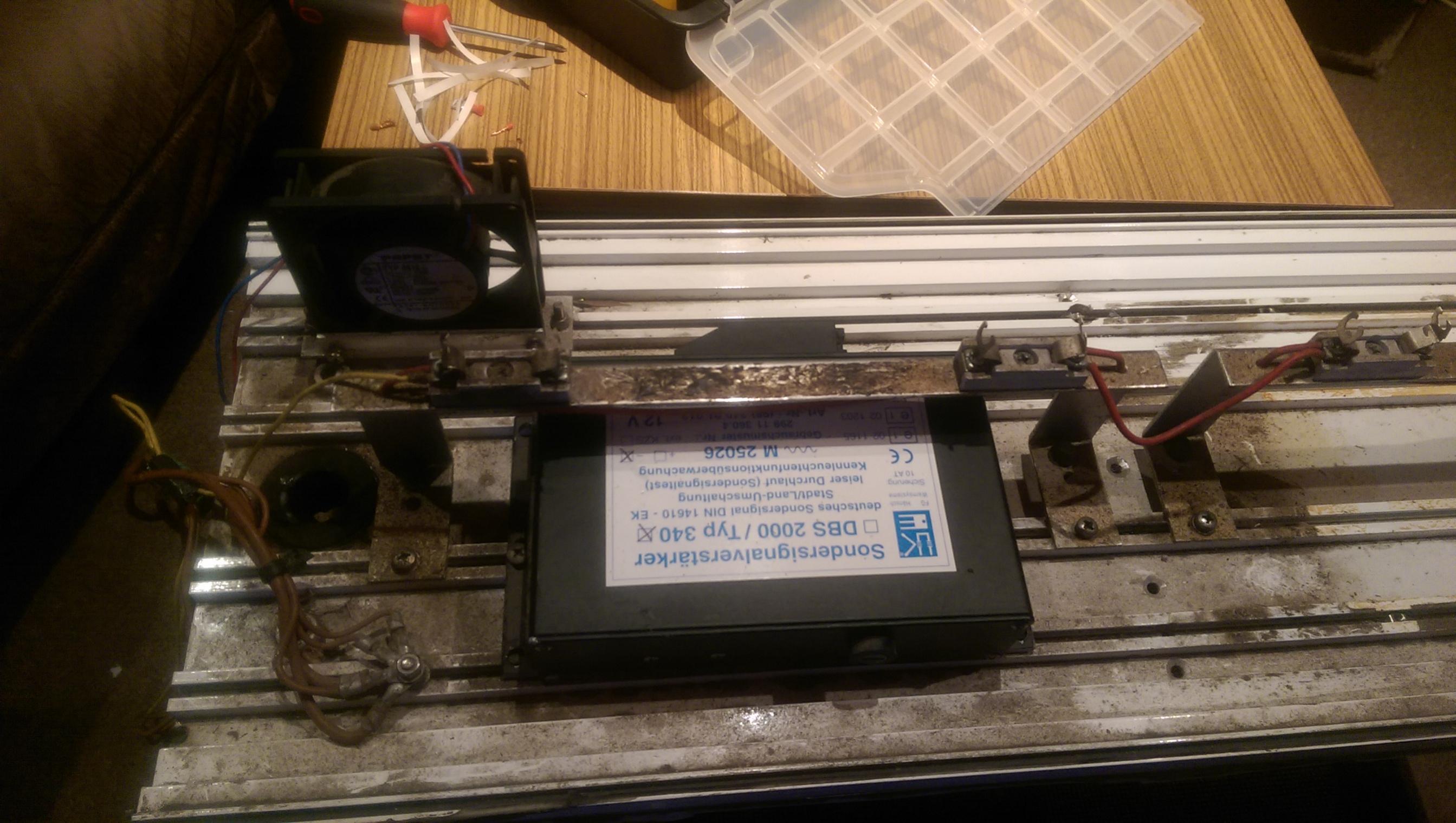 bin beim Zerlegen des DBS 2000 etwas stuzig geworden. Vorher die Ausstatttung 2 EKL 300 mit Typ 340 Hintergrundbeleuchtung im Balken Nun ist auf dem Bodenprofil eine Halterung mit einem Lüfter wie man sie aus dem PC bereich kennt. Ist der immer drin bei Balken mit Hintergrundbeleuchtung? Er wurde an die Plus Stromzufuhr der Kennleuchten bzw zur Leistungselektronik mit angeklemmt. Ist das so Orginal? Gruß Basti |