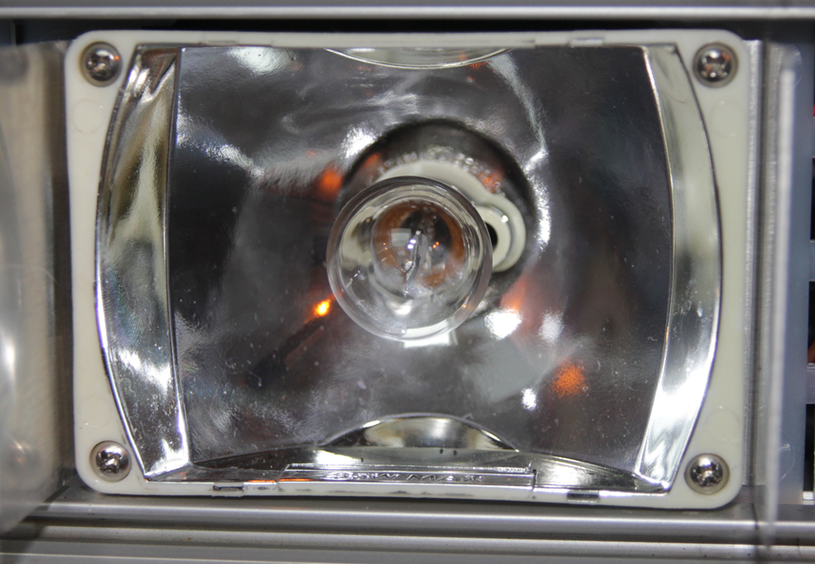 Video: Wenn die Leuchten ausgehen sieht man auch ganz gut den runden Kreis den ich beschrieben habe. Dort tritt das meiste Licht aus. Ohne die Matte Oberfläche geht es zur Seite verloren und man sieht nur noch die Glühlampe leuchten. Denn Sinn habe ich auch nicht nicht verstanden. Man hätte einfach Parabolreflektoren hinter einer klaren Scheibe nehmen sollen.