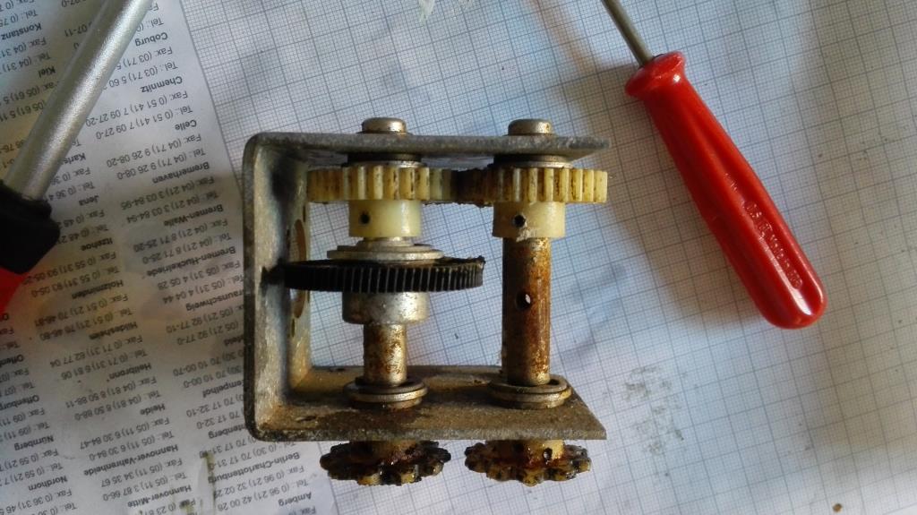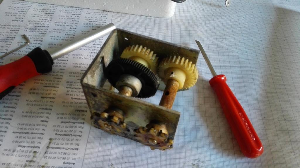 Die Gearbox habe ich zerlegt und gesäubert. Auf eine Neuverzinkung habe ich verzichtet. Daher wurde es nur geschliffen. Besonderes bei den sichtbaren Stellen.