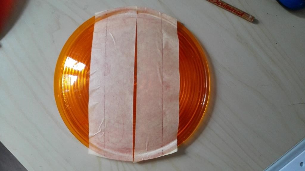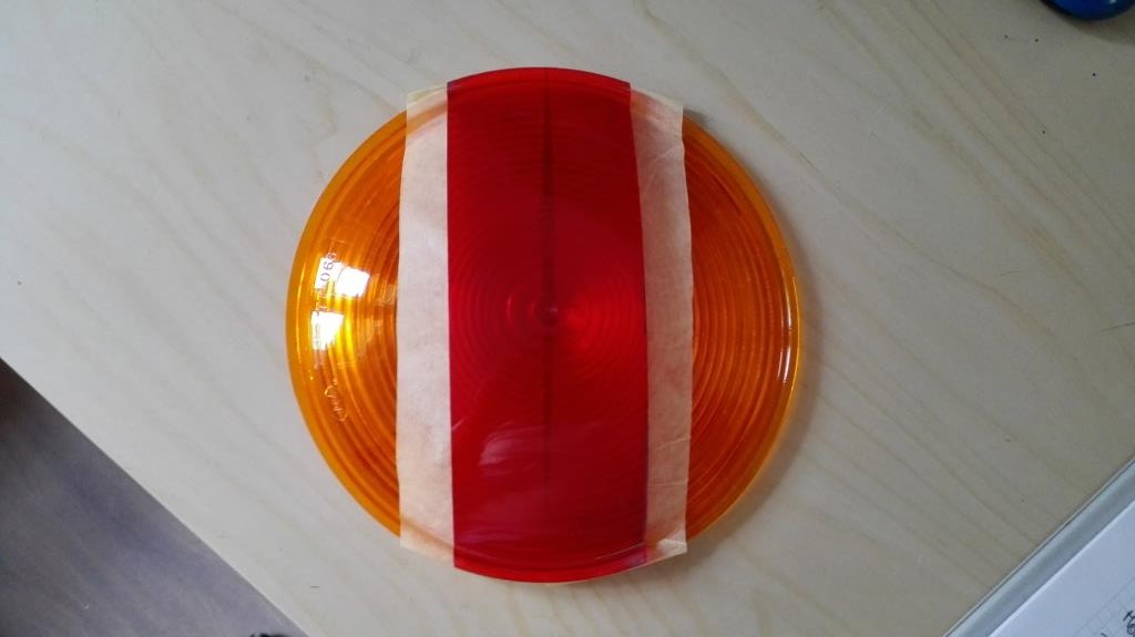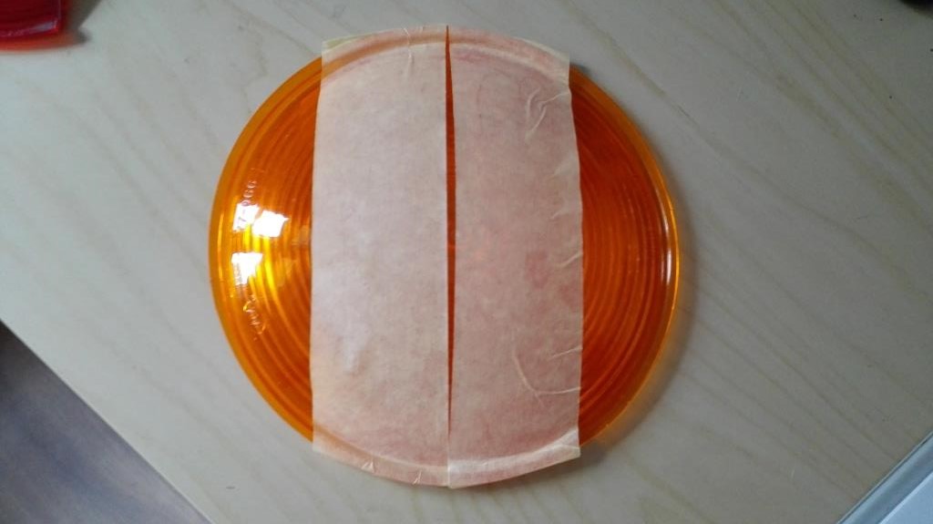 Ausgangspunkt aller 12F Filter sind die DIETZ 77-066 Streuscheiben. Also bestellen und eigentlich ist es fast ein bissel schade diese zu zersägen. 1. abkleben 2. Maße von den vorhandenen roten übernehmen 3. das Klebeband eignet sich gut, dass man jederzeit korrigieren kann 4. ausschneiden mit dem Dremel und die Kanten entgraten |