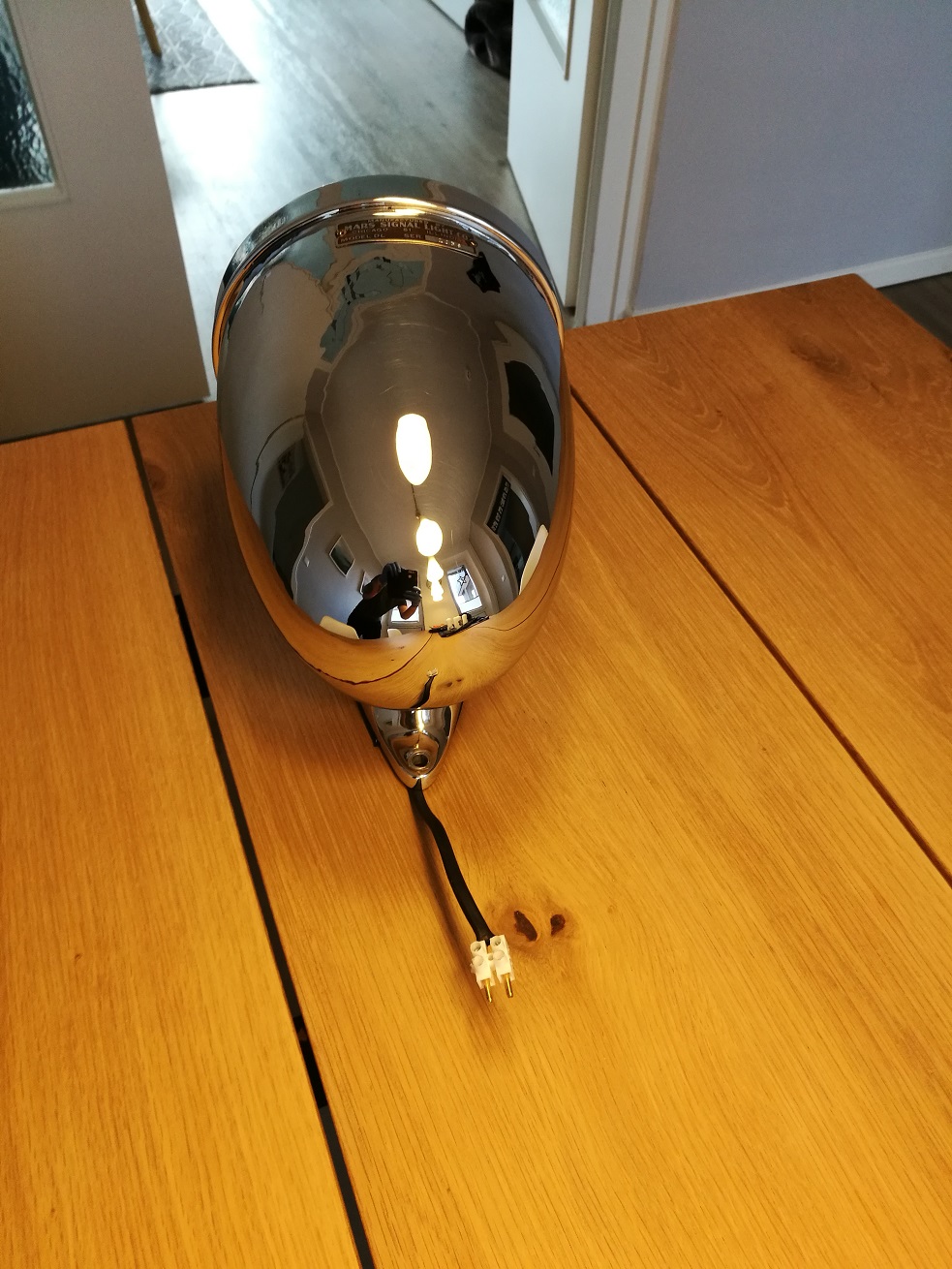 Eine Mars DL Leuchte. Diese Leuchte ist schon etwas besonderes. Der Spiegel dieser Leuchte geht nicht in einer optischen 8 sondern nur von rechts nach links. Das ist das Vorgängermodell der Mars 888. Erst nach diesem Modell wurde noch das von " Oben nach Unten" hinzugefügt. 6 Volt Leuchtmittel: GE 1015 6.4V 60 Watt Hier mal ein paar Bilder vom Innenleben: |