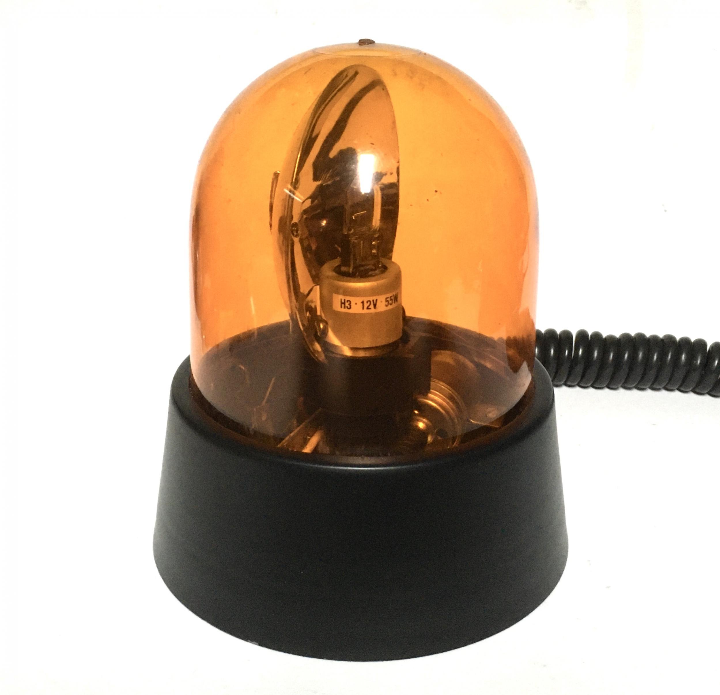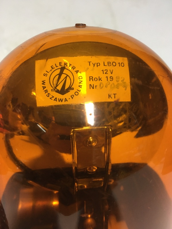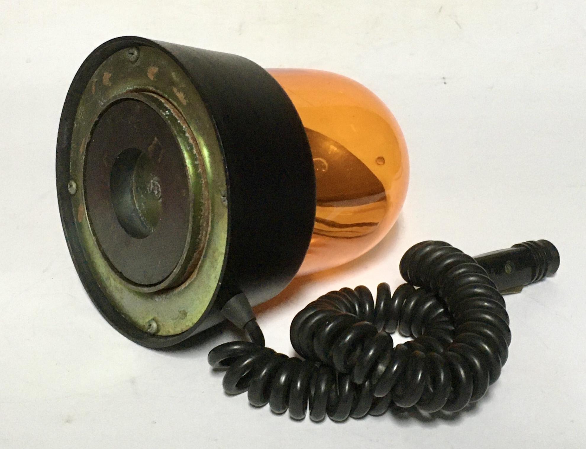 Typ: LBO 10 Produktionsjahr 1992 Bauart: Drehspiegelleuchte Leuchtmittel: H3 Antrieb: Schneckenantieb Montageform: Magnet Anschluss: Zigarettanzünderstecker Sehr kompakte Rundumleuchte von Elektra/Warschau. 15x13cm Gesamtgröße und noch komplett aus Metall gefertigt. Der flache Reflektor bündelt das Licht der H3 ziemlich eng und erzeugt damit eine sehr hohen Hell/Dunkel Effekt. Ca 150 Umdrehungen pro/min. |
