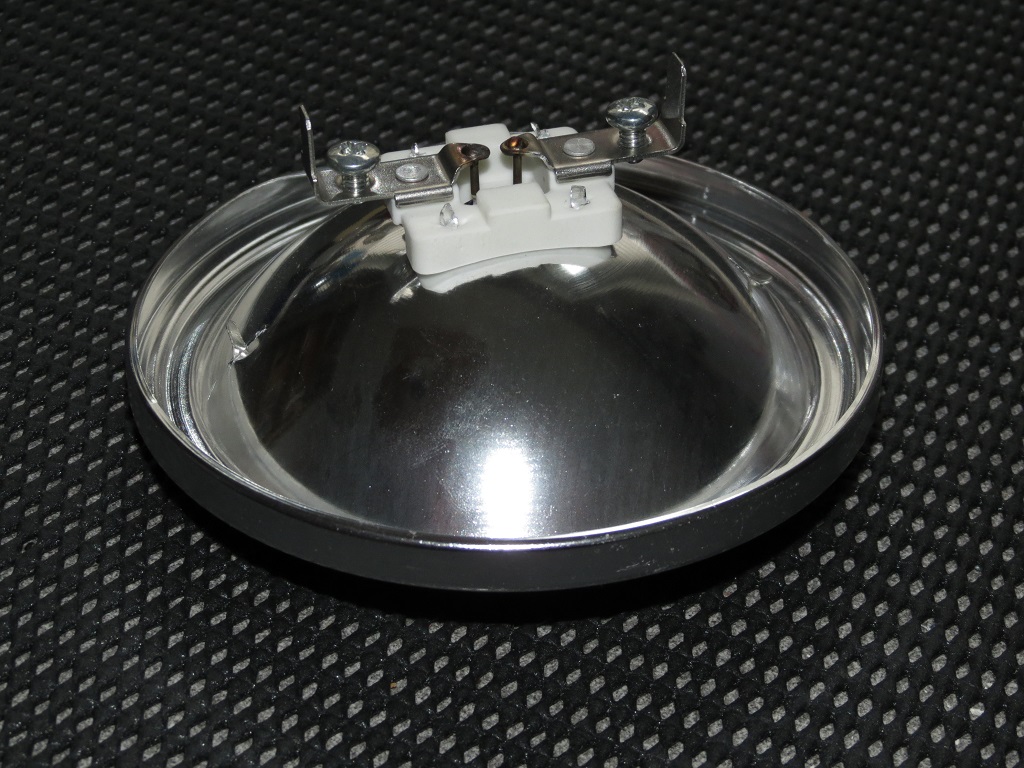 Solange der Lichtkegel passt wäre mir das bauchige egal (bin ja mittlerweile auch etwas bauchiger als früher ) Könnte mir vorstellen das es bei den PAR36 bei der Wölbung der Reflektoren auch Unterschiede gibt. Wären für mich in der Tat eine echte Alternative zu den sealed Beam. Und fallen auch Optisch nicht großartig auf. Ich fand ja die "Spar"-Reflektoren mit den Bajonett-Sockel Leuchtmitteln die man von manchen Army-Skybolt kennt, vom Ansatz her auch schon gut aber sah halt irgendwie komisch aus. Im letzten Spectrasystem (den ich bekommen habe) waren diese Teile verbaut: Recht dünnes Alu mit einem fest verbaute 50W Halogen Leuchtmittel - Macht Licht ist aber für mich keine wirklich Alternative! |