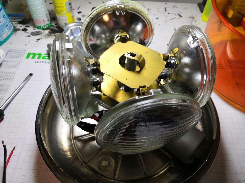 Diese Rundumleuchte habe ich noch nicht gehabt, daher ist der Aufbau etwas neu, vorallem bei der Halterung der SB und Übertragung von plus.
