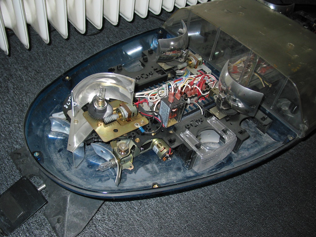 Als Besonderheit sei hier erwähnt, daß die Gehäuseunterteile (genauso wie die Hauben) rot/blau gefärbt sind. Deshalb sind auch keine weiteren Farbfilter verbaut, sondern lediglich klare Streulinsen (bei Flasher und SteadyBurn). Da es beim Vista (im Gegensatz zum MX7000 von Code3) nicht möglich ist 2 Intersection-Lights pro Seite (vorn und hinten) zu montieren, wurden hier anstelle der hinteren Intersection-Lights jeweils 2 Rear-Flasher und flashing Alley Lights verbaut. Zustand bei Erhalt: Der Balken hat den Transport, abgesehen von der blauen Haube, gut überstanden. Auch bei diesem Vista ist, wie auch schon beim ersten Halogen-Vista, ein Drehspiegelreflektor gebrochen und ich frage mich immer noch wie sowas geht. Was bisher geschah: Die defekte blaue Haube und der zerstörte Reflektor wurden durch gute Gebrauchtteile ersetzt sodass der Balken wie voll funktionstüchtig ist. Eine gründliche Reinigung steht noch aus! Fortsetzung folgt ... Aufbau/Technik: Die Basis besteht aus einem stranggeprssten Alu-Profil, welches auf der Unterseite mit zwei (Der Länge nach verlaufenden) Nuten zur variablen Befestigung der Montagefüße versehen ist. Die unteren Gehäuseteile werden direkt am Grundträger befestigt. An ihnen werden sowohl die Leuchtenträger als auch die Hauben befestigt. Die Hauben werden jeweils mit 5/4 (Außen/Mitte) Schrauben an den unteren Gehäusehälften befestigt. Die Leuchten der unteren Ebene sind nur am Leuchtenträger, die Drehspiegel sind am Leuchtenträger und teilweise zusätzlich noch am Frame befestigt wohin gegen die Diamant-Spiegel in den äußeren Hauben befestigt sind. |
