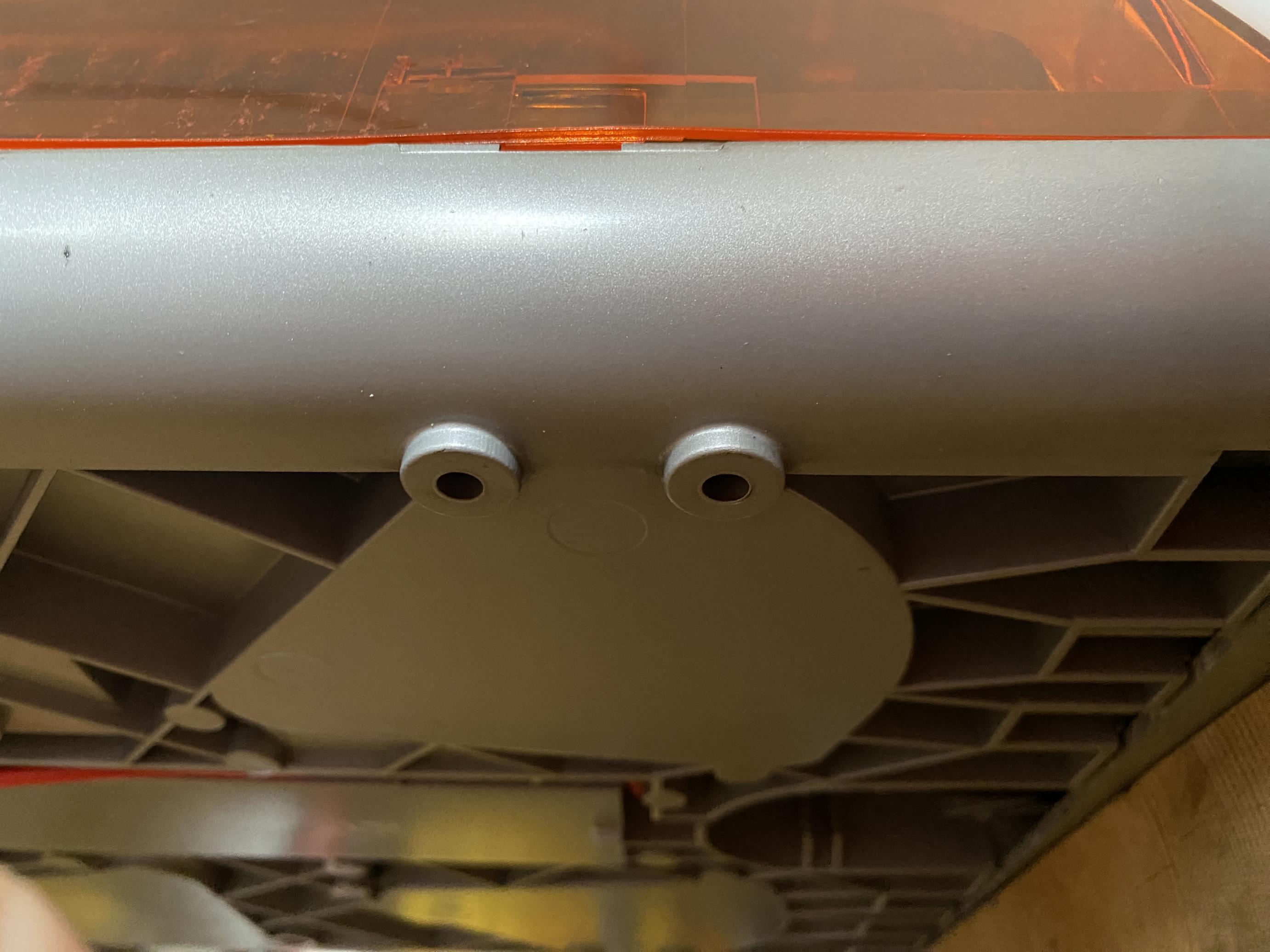 Das Problem ist hier besser zu sehen. Diese 2 bzw. 4 Knubbel für die Schrauben je Seite drücken die Hauben nach oben, zwar nur minimal aber ausreichend, dass die Blenden nicht mehr passen