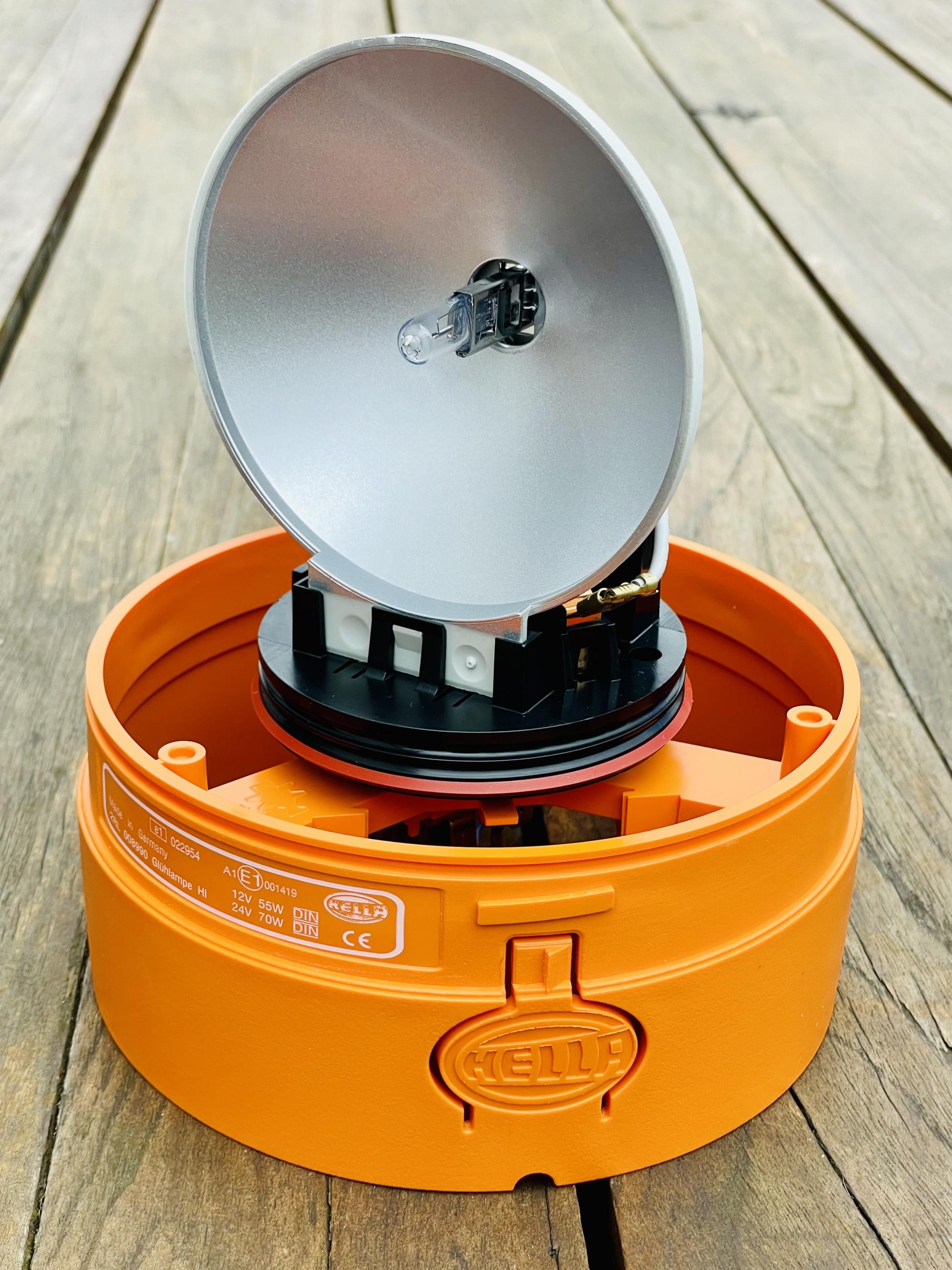 Klare Haube in Orange mit dem normalen Parabolspiegel ist wirklich sehr gut.