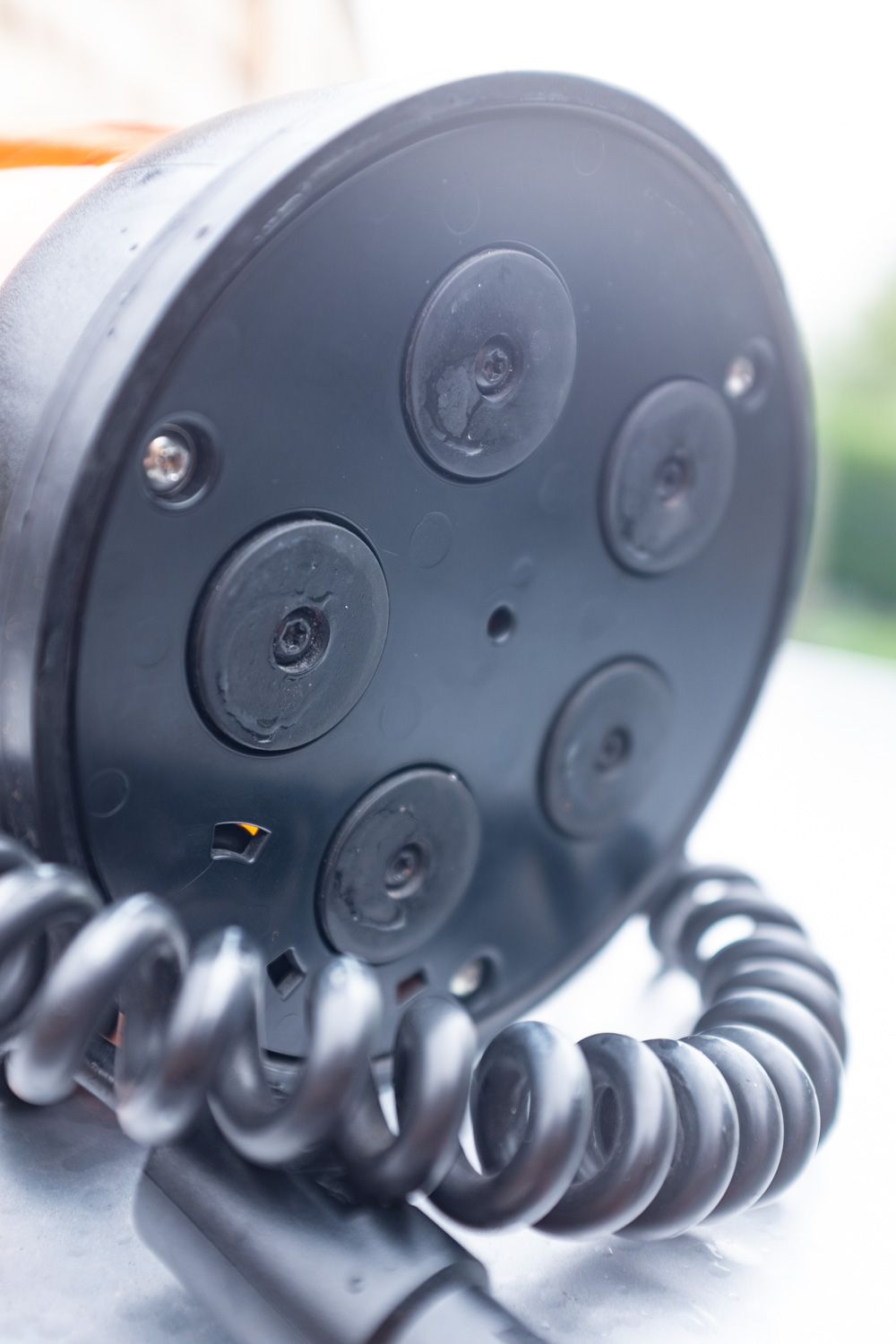 Der Motor hat eine Elektronik und kann mit 12V oder 24V betrieben werden. Hier als Exportversion mit klarer Haube und Magnethalterung. Einzig das Spiralkabel ist wie gewohnt bei Hella, nicht sehr berauschend im Bezug auf Länge und Flexibilität. Mit der klaren Haube ist das Lichtbild in der Weitwirkung nochmal ein bisschen besser, mann muss nur darauf schauen dass die Kennleuchte gerade auf dem Dach sitzt. Die Haube mit Optik ist im Nahbereich besser und derzeit eine gewisse Neigung der Leuchte. |